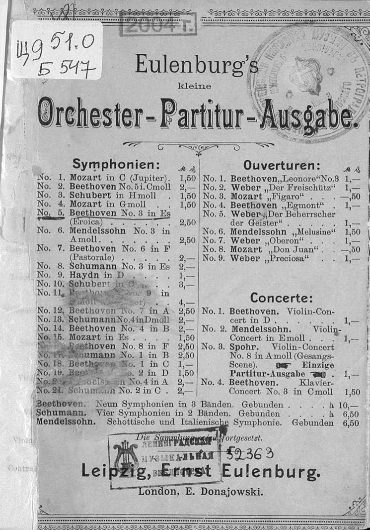 Перешедшие в общественное достояние материалы электронного фонда ЦГПБ им. В.В. Маяковского. Сведения о издательстве или типографии: E. Eulenburg. Место издания: Лейпциг
