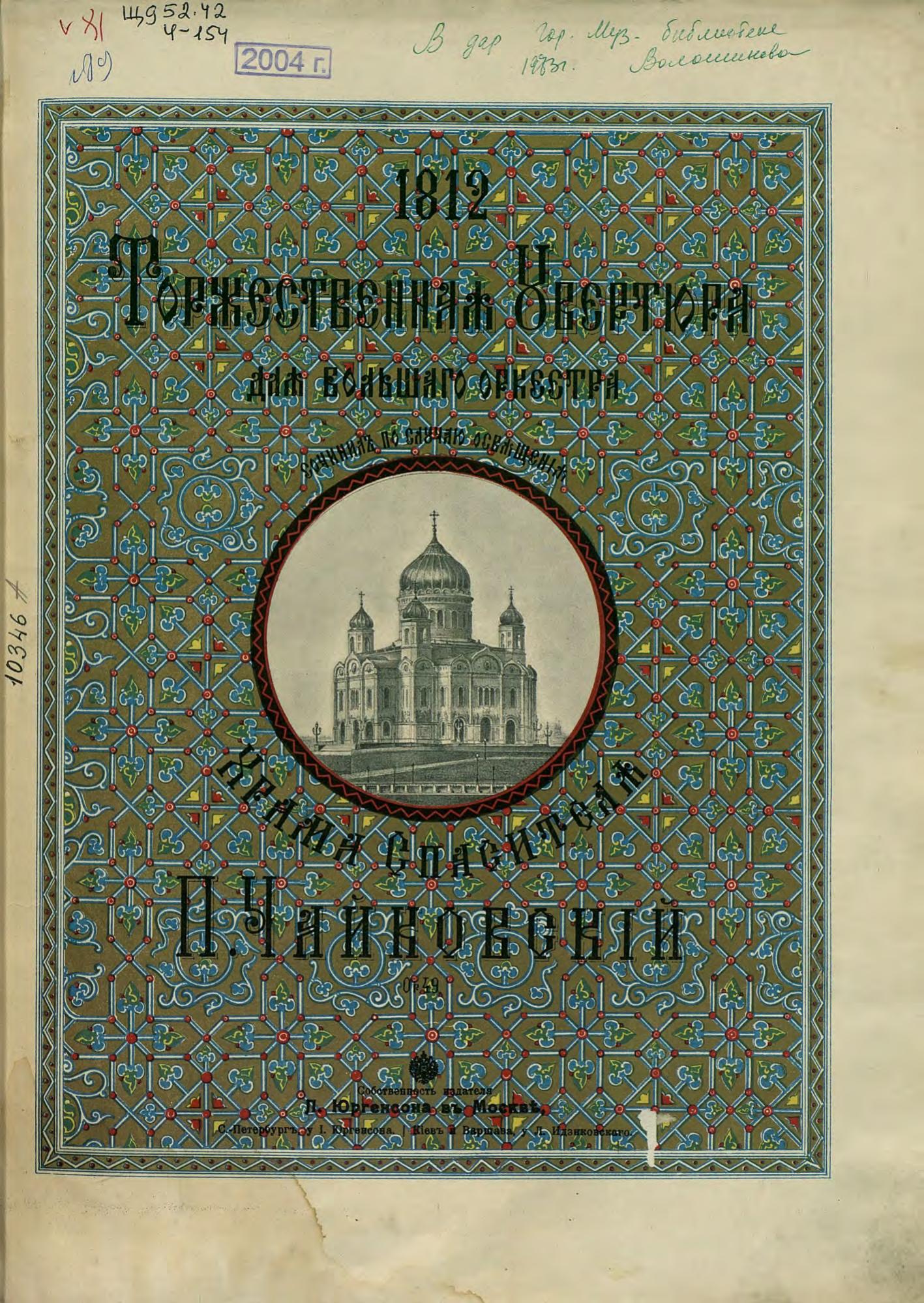 Перешедшие в общественное достояние материалы электронного фонда ЦГПБ им. В.В. Маяковского. Сведения о издательстве или типографии: П. Юргенсон. Место издания: Москва