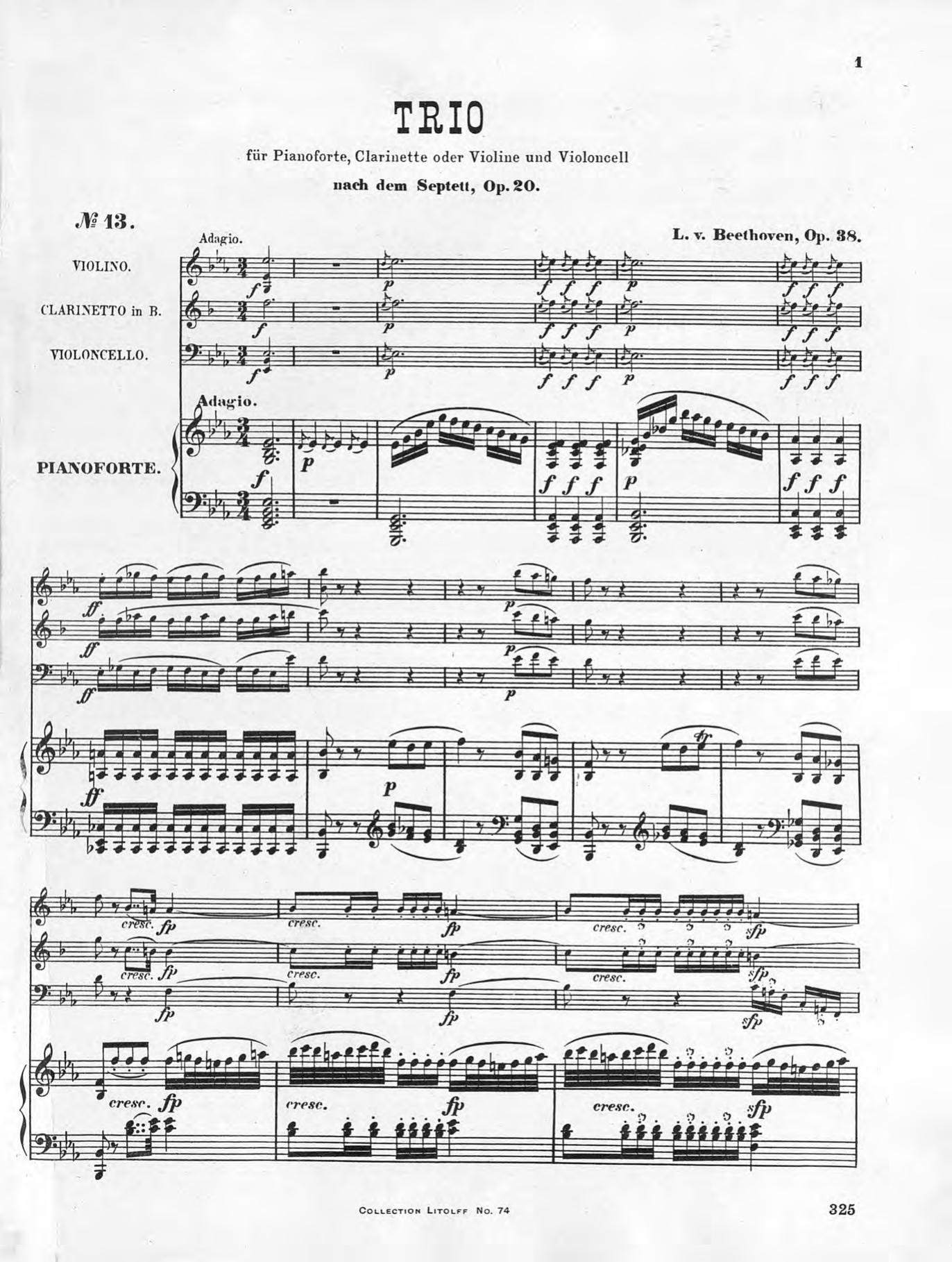 Trio fur Pianoforte, Clarinette oder Violine und Violoncell in Es dur (Mi b. majeur)