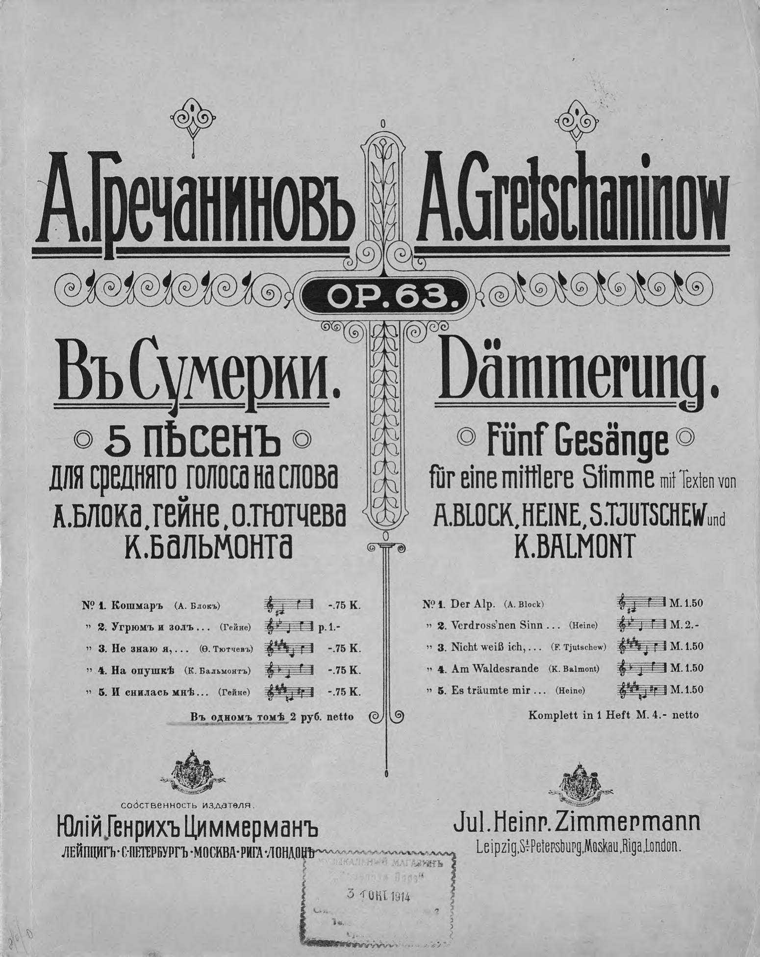 Перешедшие в общественное достояние материалы электронного фонда ЦГПБ им. В.В. Маяковского. Сведения о издательстве или типографии: изд. Циммермана. Место издания: Лейпциг