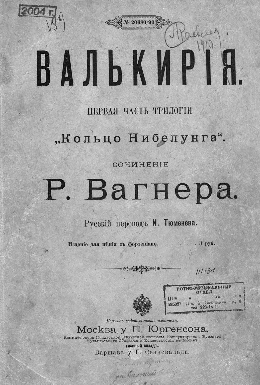 Перешедшие в общественное достояние материалы электронного фонда ЦГПБ им. В.В. Маяковского. Сведения о издательстве или типографии: П. Юргенсон. Место издания: Москва