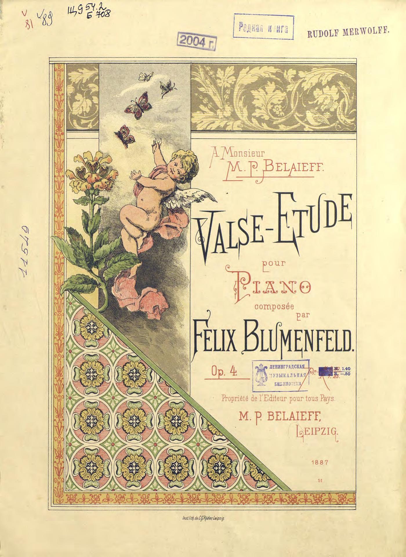 Перешедшие в общественное достояние материалы электронного фонда ЦГПБ им. В.В. Маяковского. Сведения о издательстве или типографии: изд. М. Беляева. Место издания: Лейпциг