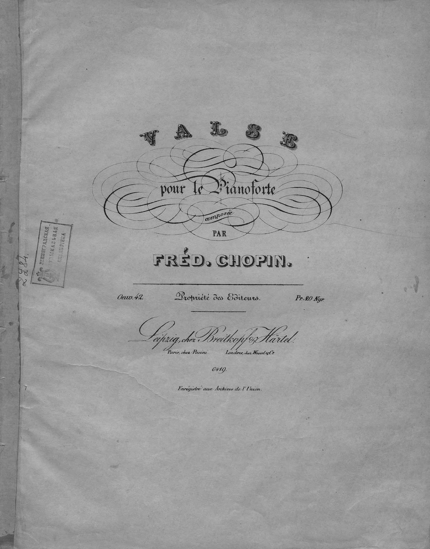 Valse pour le piano comp. par Fred. Chopin
