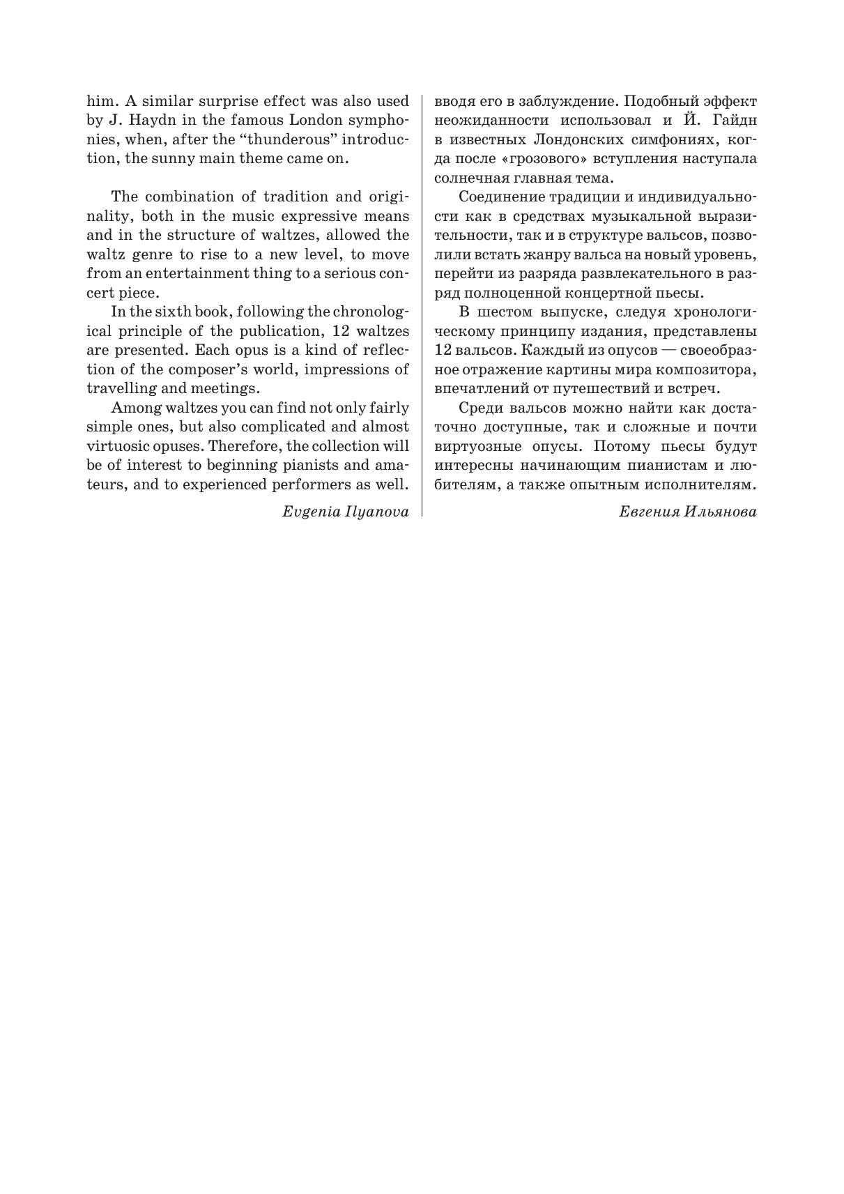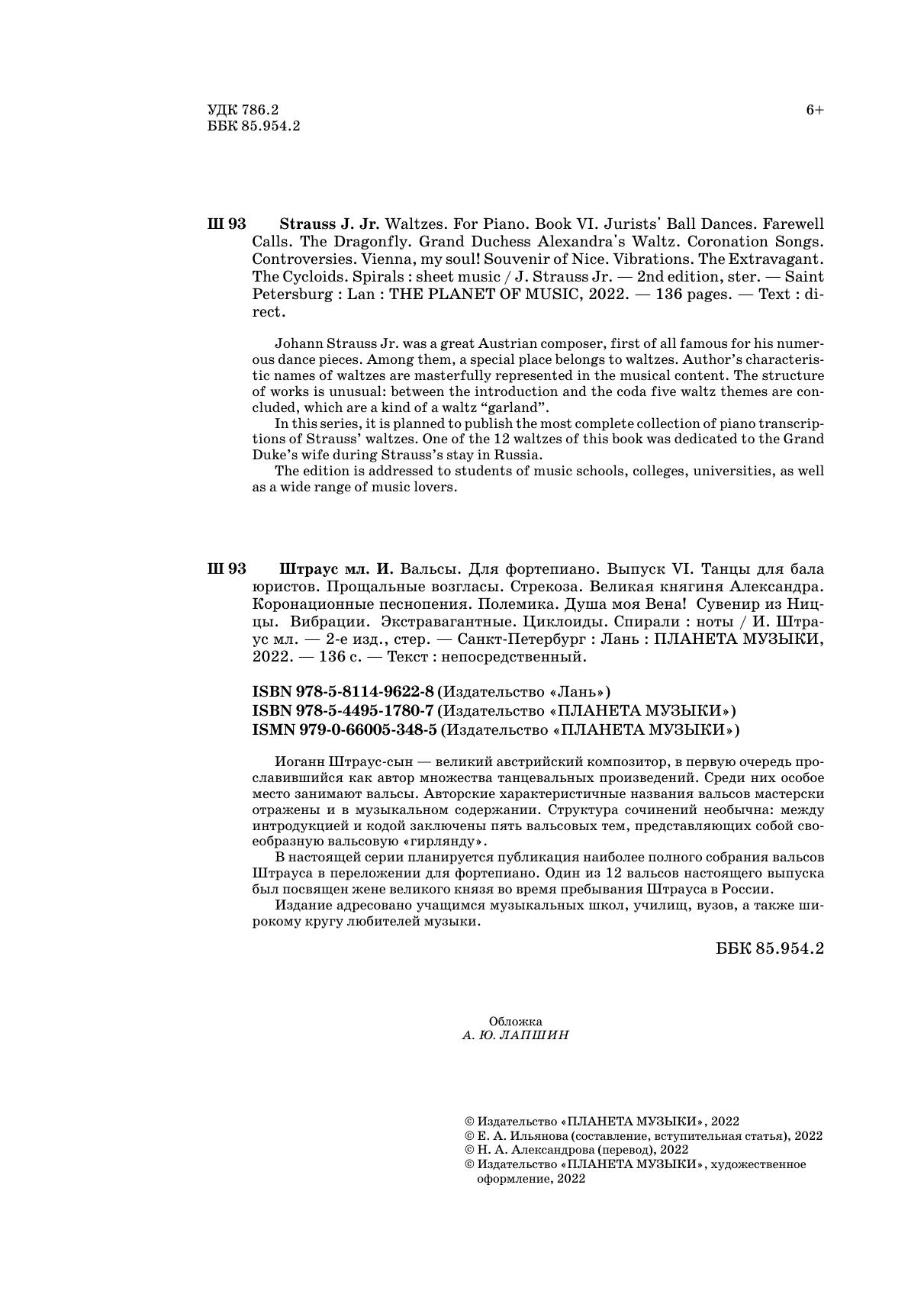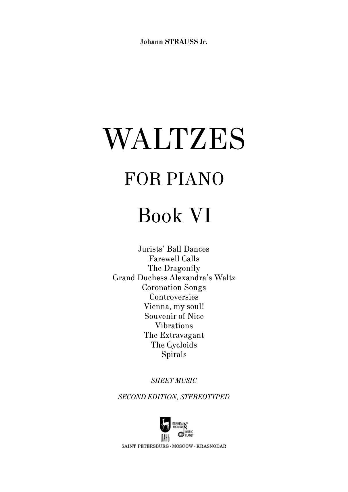 Вальсы. Для фортепиано. Выпуск VI. Танцы для бала юристов. Прощальные возгласы. Стрекоза. Великая княгиня Александра. Коронационные песнопения. Полемика. Душа моя Вена! Сувенир из Ниццы. Вибрации. Экстравагантные. Циклоиды. Спирали