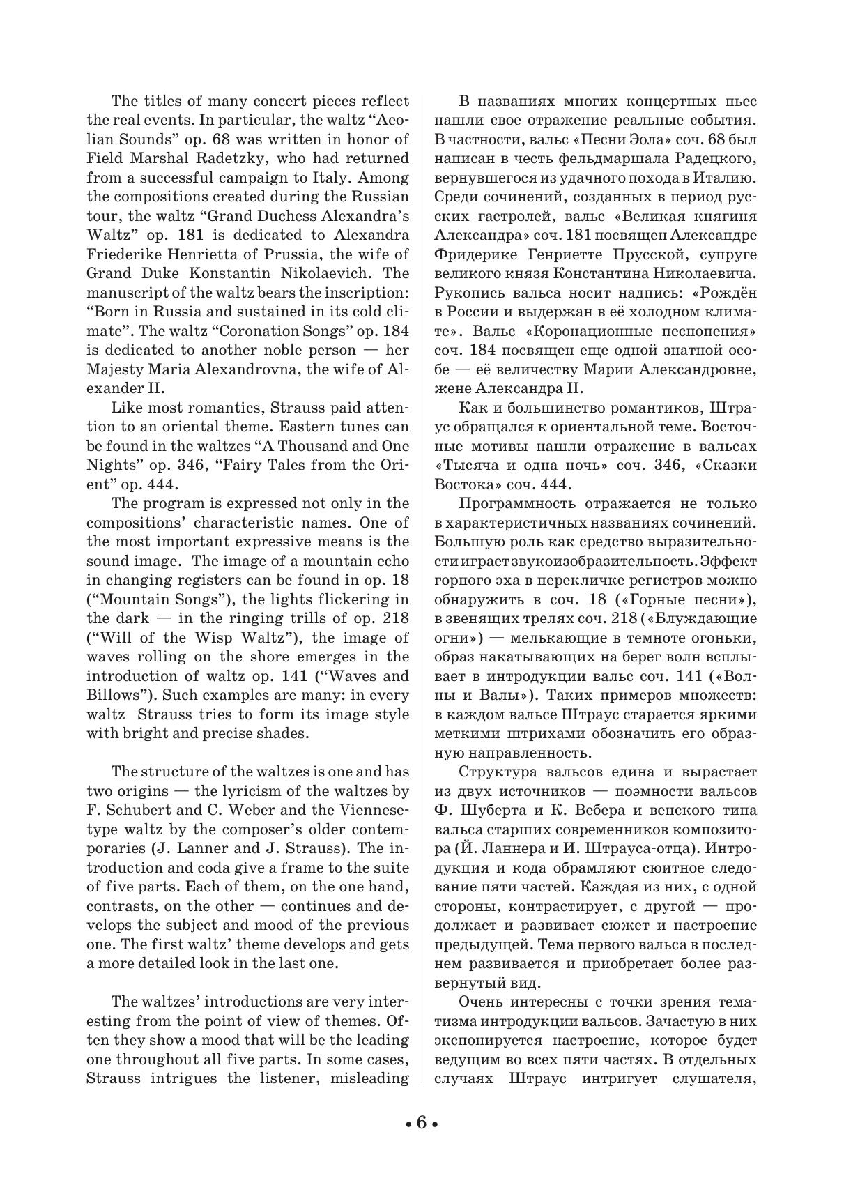 В настоящей серии планируется публикация наиболее полного собрания вальсов Штрауса в переложении для фортепиано. Один из 12 вальсов настоящего выпуска был посвящен жене великого князя во время пребывания Штрауса в России.