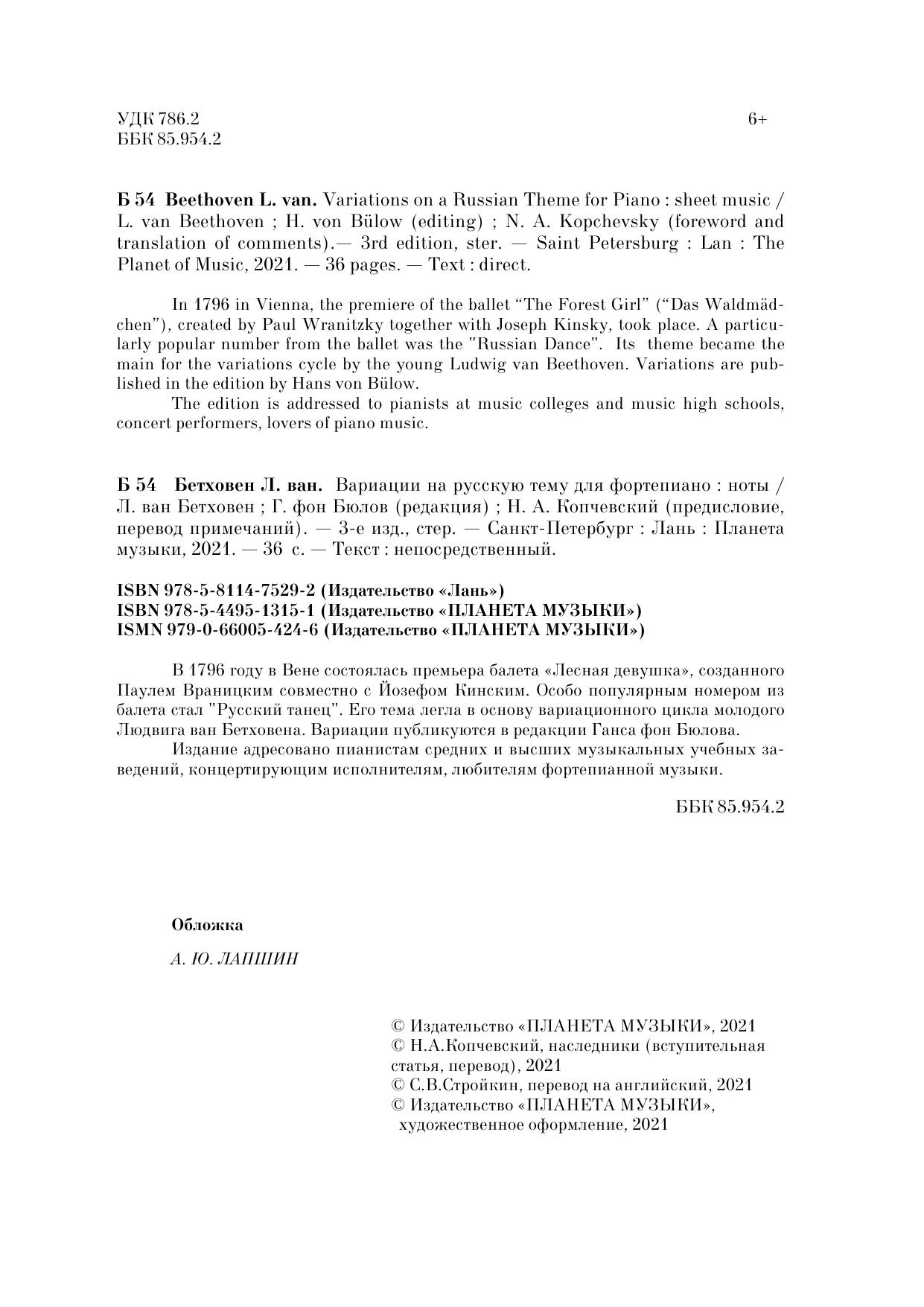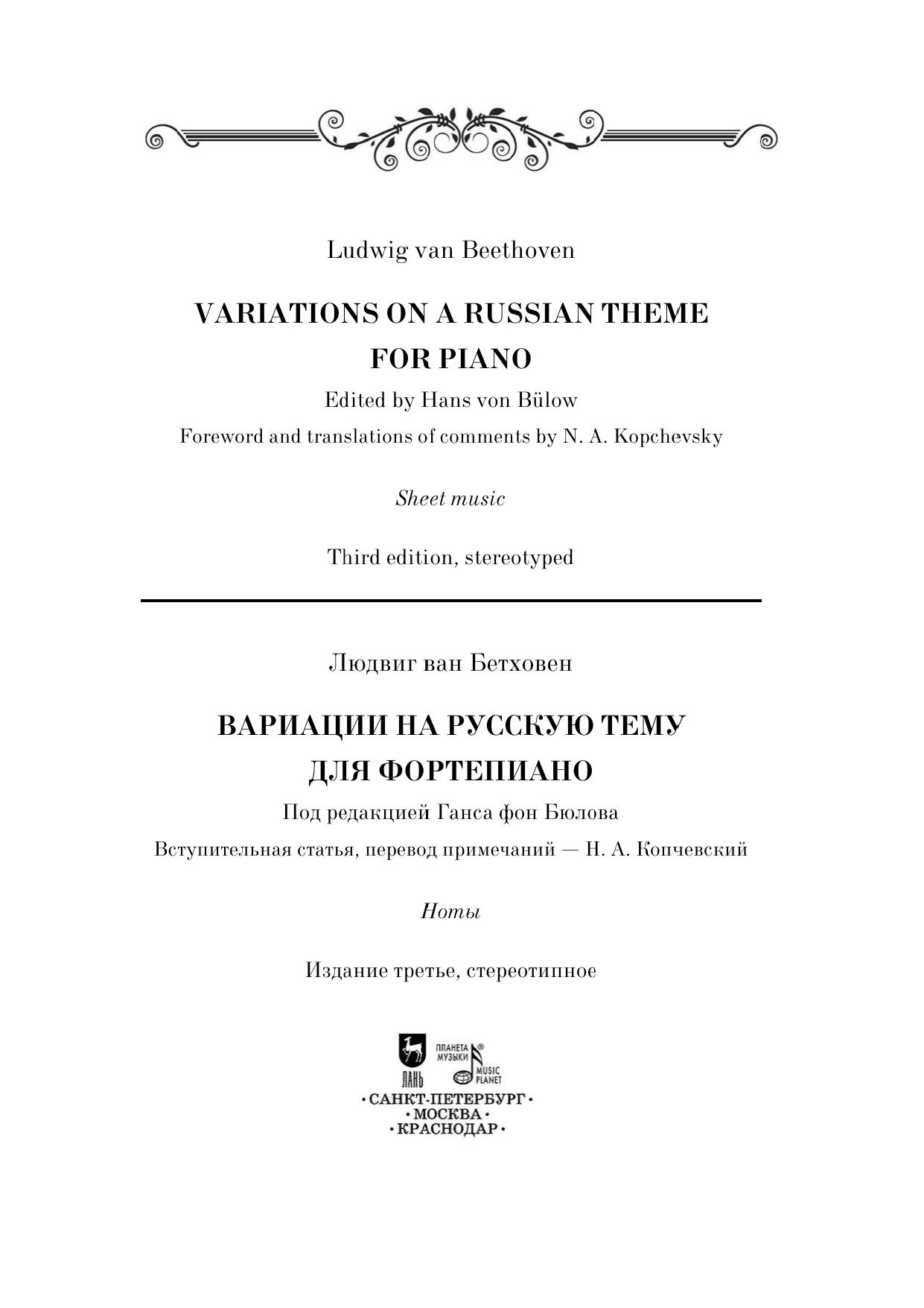 В 1796 году в Вене состоялась премьера балета «Лесная девушка», созданного Паулем Враницким совместно с Йозефом Кинским. Особо популярным номером из балета стал "Русский танец". Его тема легла в основу вариационного цикла молодого Людвига ван Бетховена. Вариации публикуются в редакции Ганса фон Бюлова. Издание адресовано пианистам средних и высших музыкальных учебных заведений, концертирующим исполнителям, любителям фортепианной музыки.