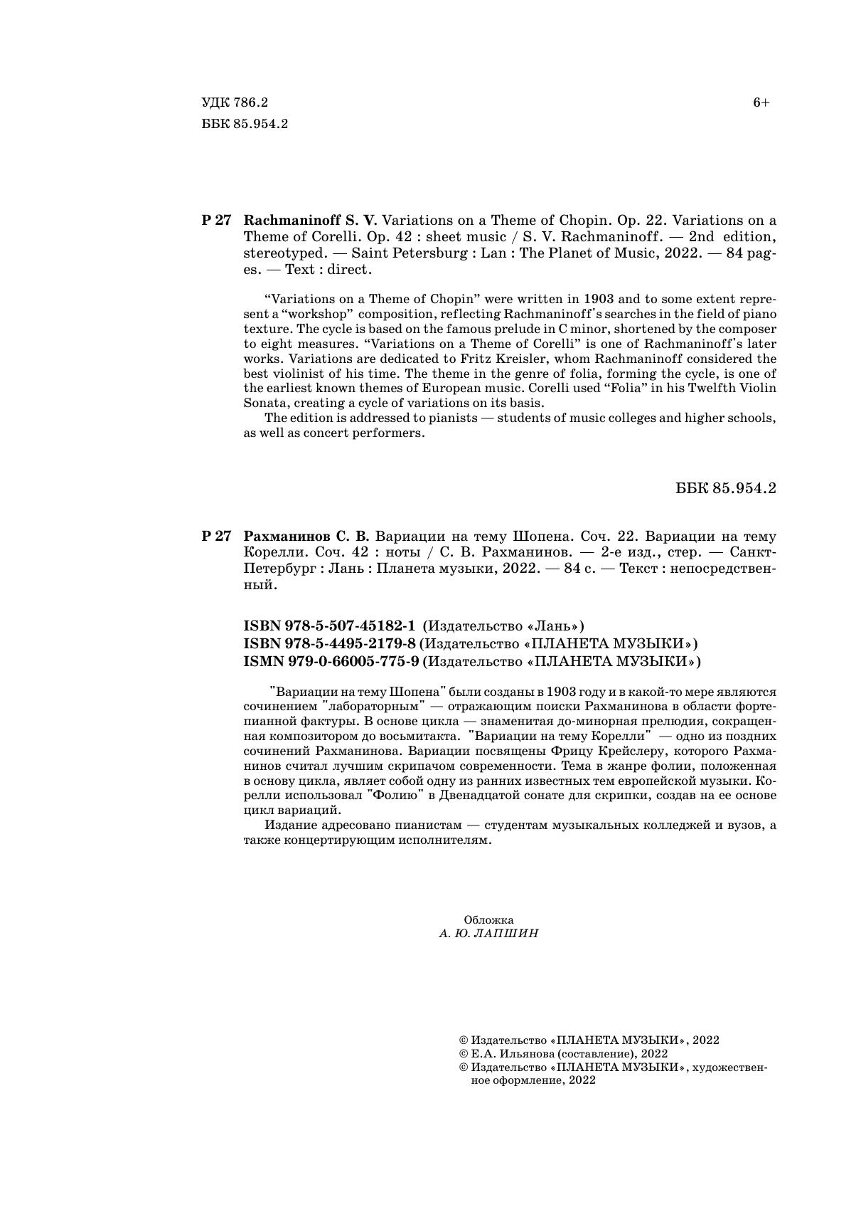 Вариации на тему Шопена. Соч. 22. Вариации на тему Корелли. Соч. 42
