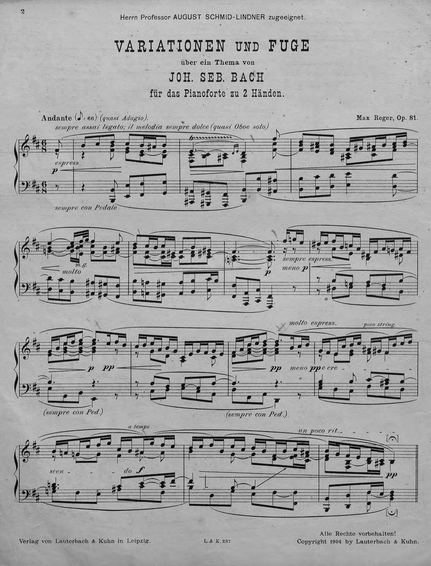 Variationen und Fuge uber ein Thema von Joh. Seb. Bach fur Klavier zu 2 Hd.