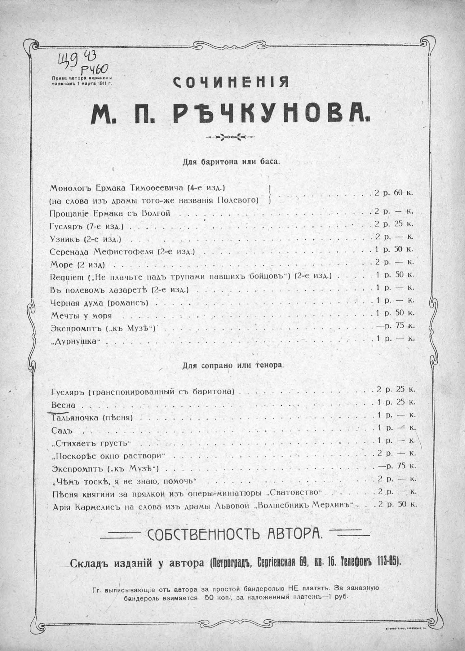 Перешедшие в общественное достояние материалы электронного фонда ЦГПБ им. В.В. Маяковского. Сведения о издательстве или типографии: авторское издание. Место издания: Санкт-Петербург