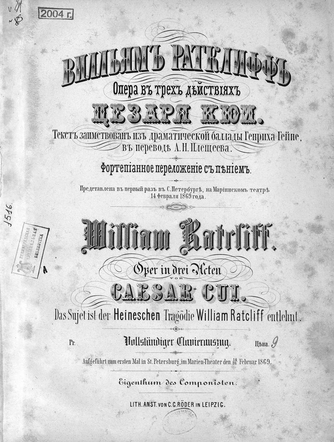 Перешедшие в общественное достояние материалы электронного фонда ЦГПБ им. В.В. Маяковского. Сведения о издательстве или типографии: Lith. ANST von C. G. Roder. Место издания: Лейпциг