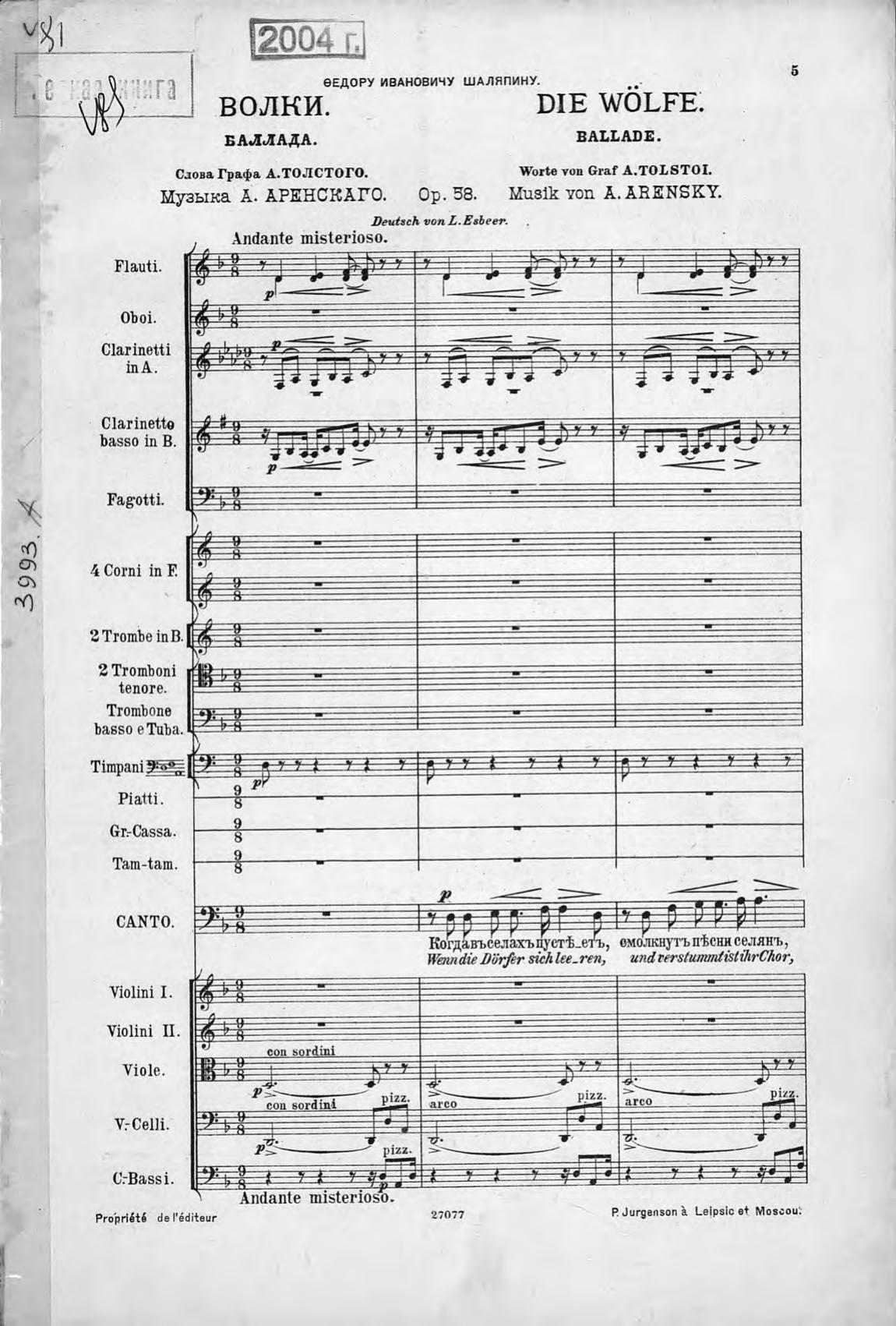 Перешедшие в общественное достояние материалы электронного фонда ЦГПБ им. В.В. Маяковского. Сведения о издательстве или типографии: П. Юргенсон. Место издания: Москва