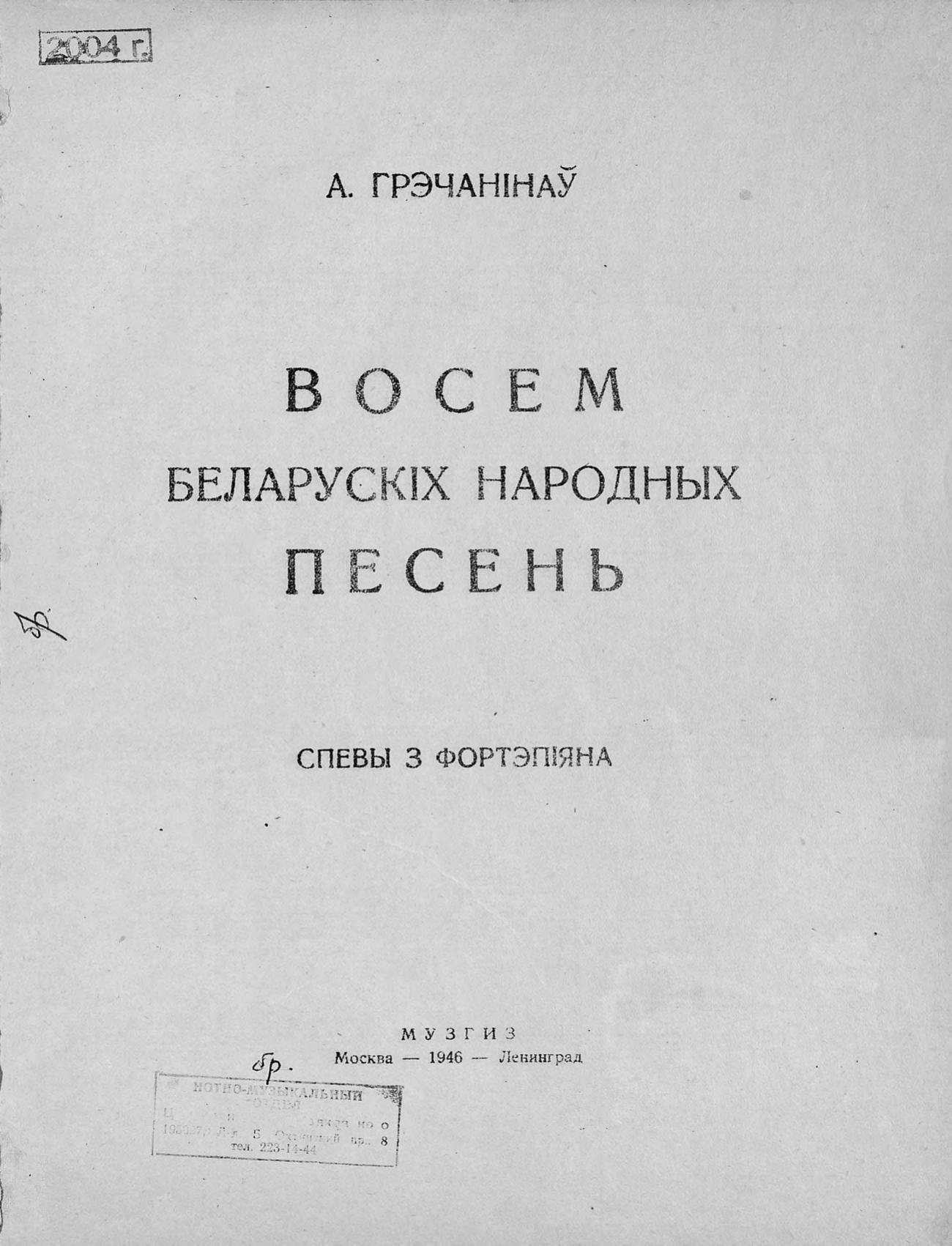 Перешедшие в общественное достояние материалы электронного фонда ЦГПБ им. В.В. Маяковского. Сведения о издательстве или типографии: Музгиз. Место издания: Москва