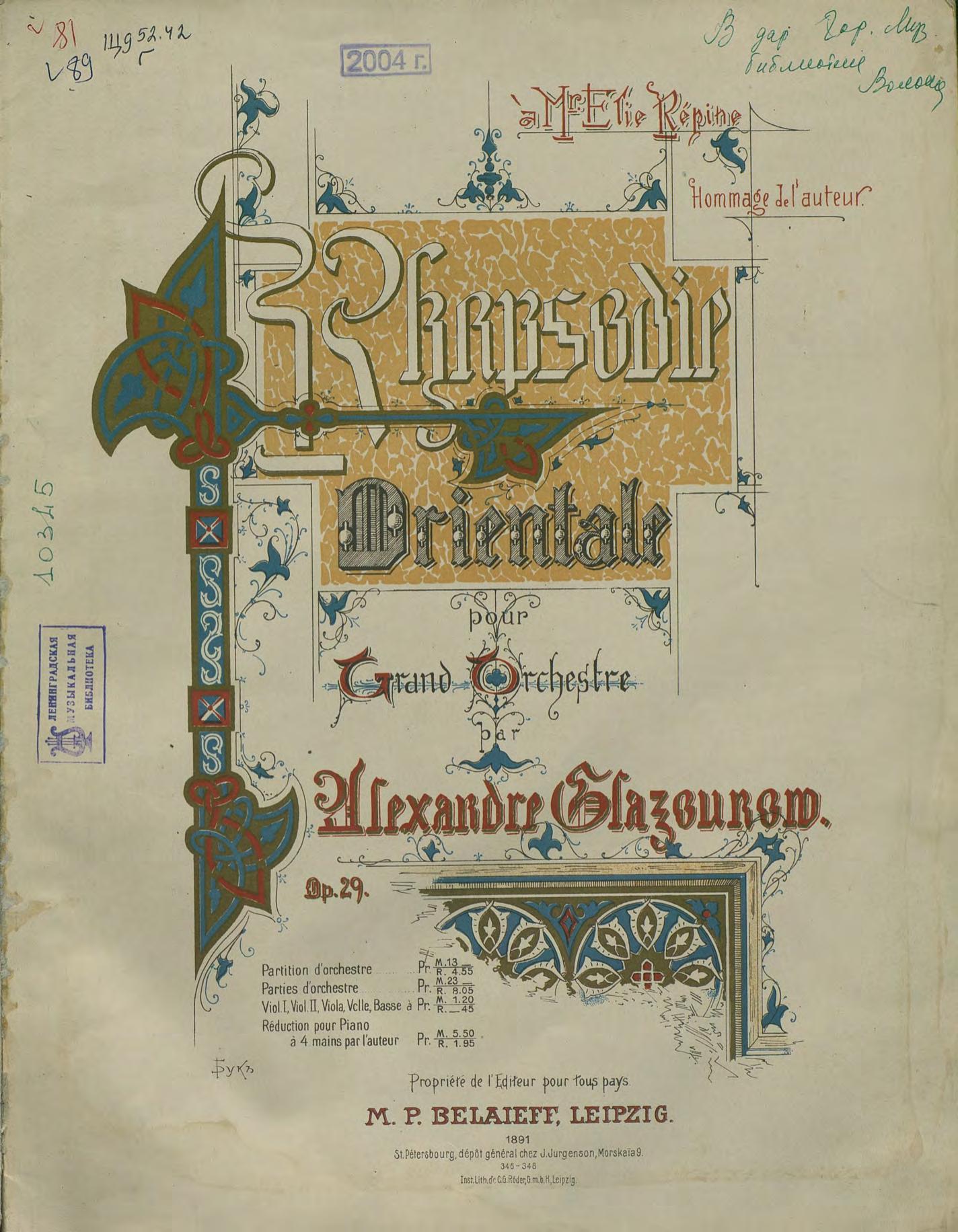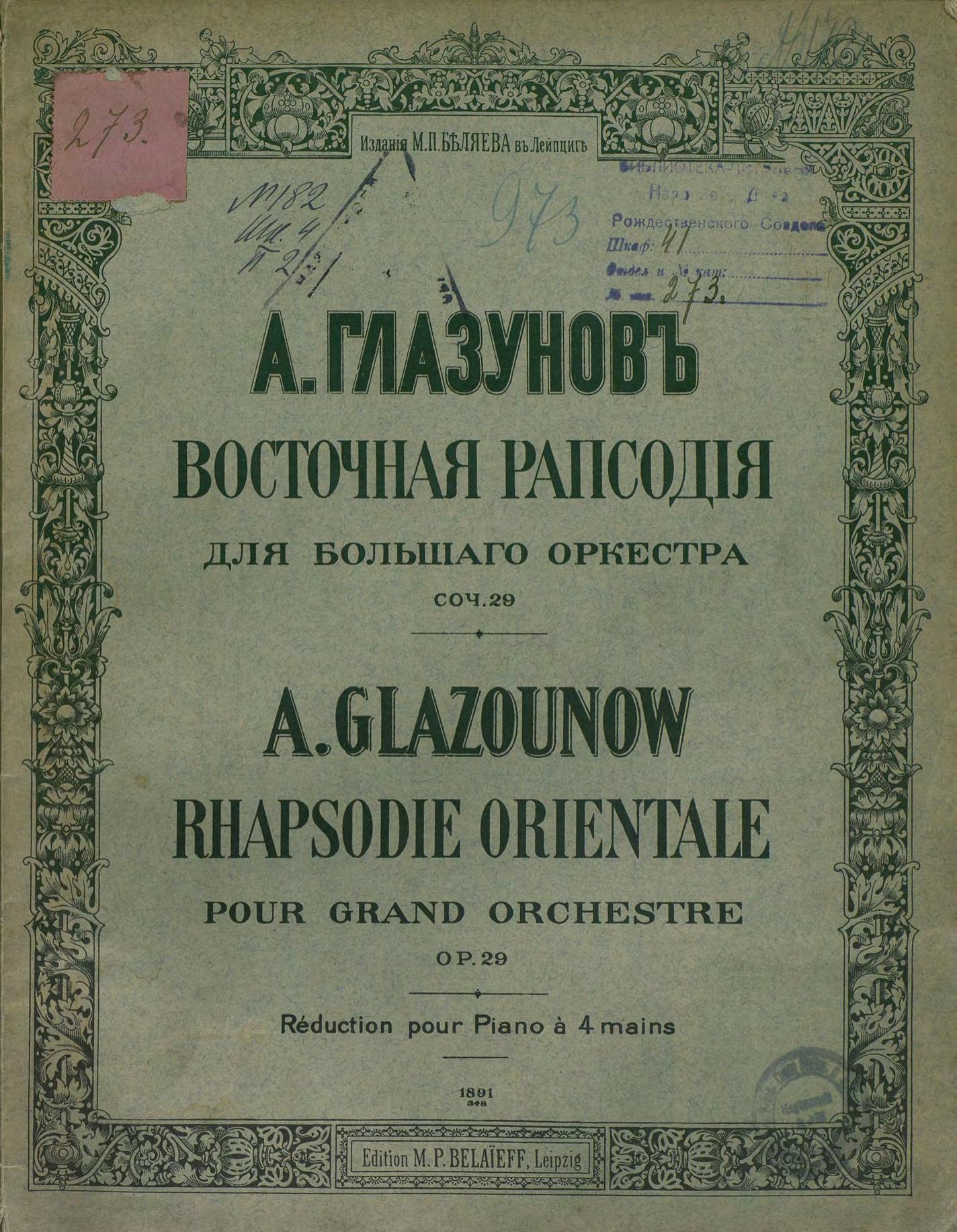 Перешедшие в общественное достояние материалы электронного фонда ЦГПБ им. В.В. Маяковского. Сведения о издательстве или типографии: М. П. Беляев. Место издания: Лейпциг