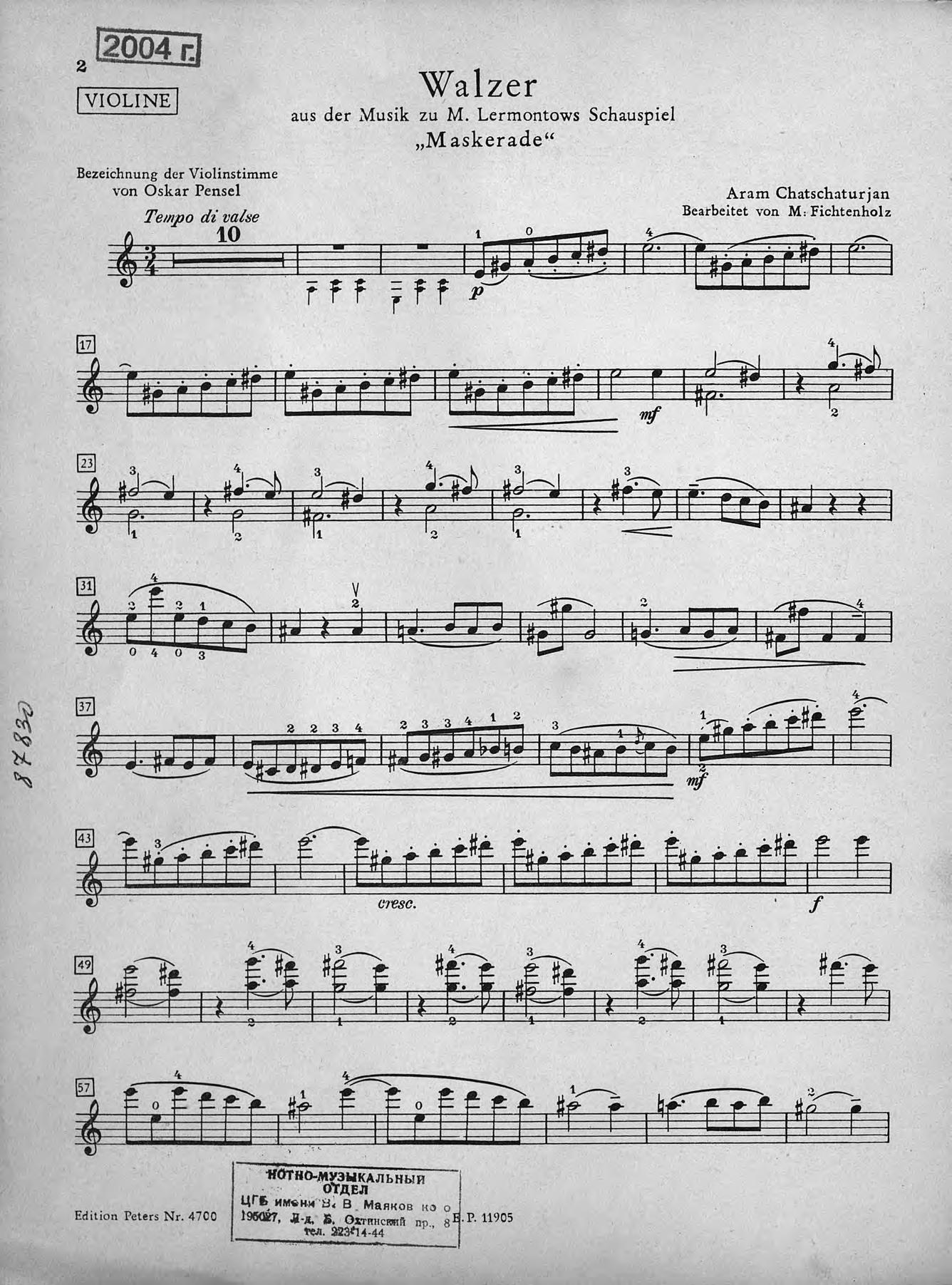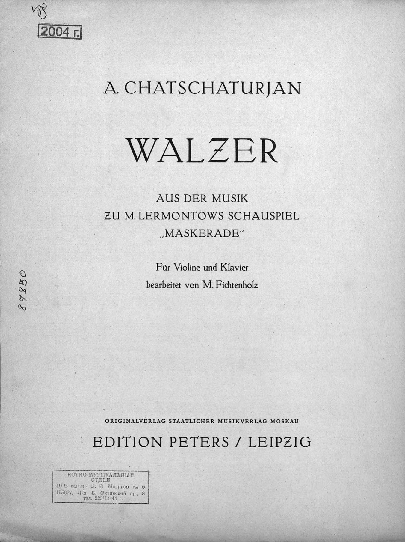 Перешедшие в общественное достояние материалы электронного фонда ЦГПБ им. В.В. Маяковского. Сведения о издательстве или типографии: Peters. Место издания: Лейпциг