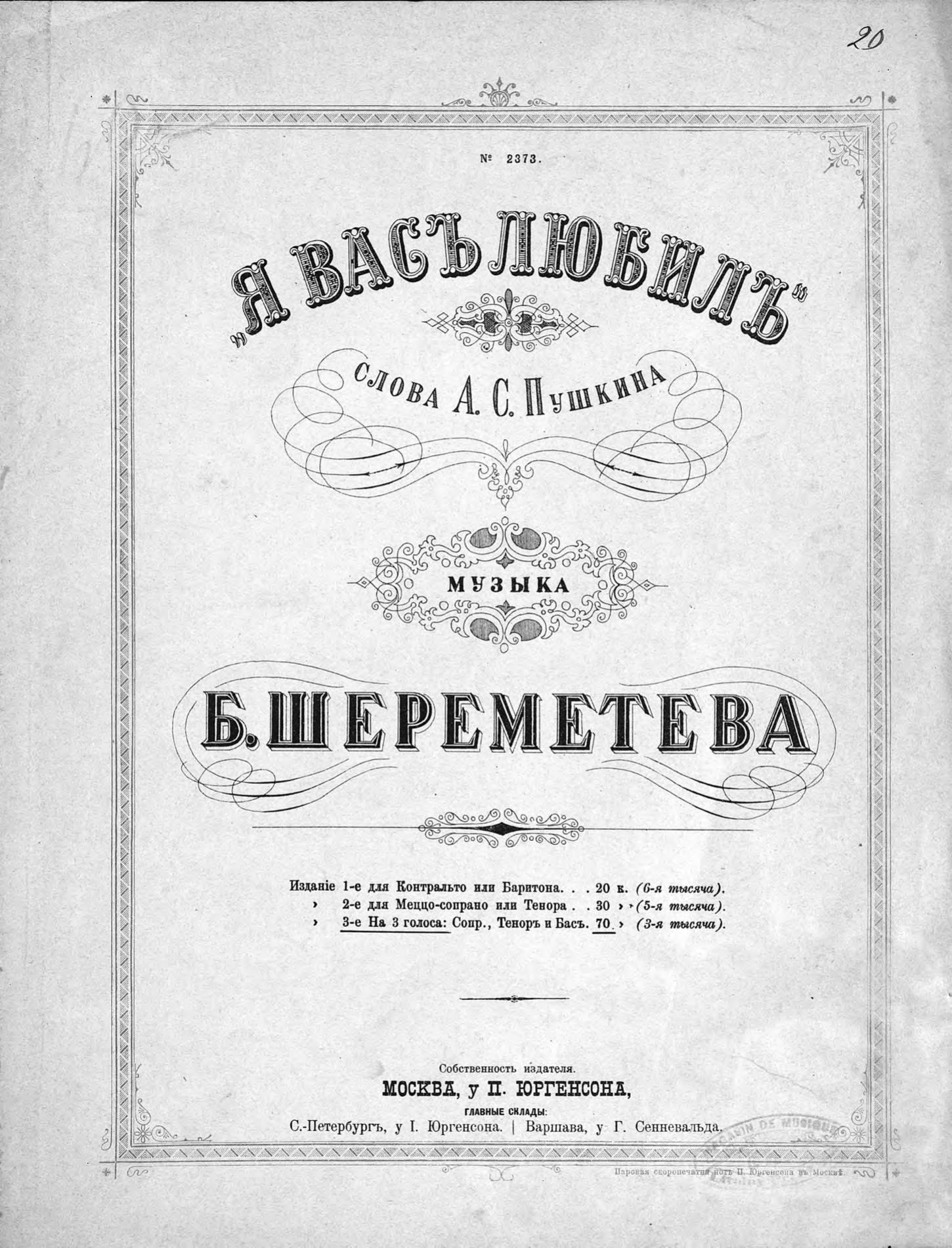 Перешедшие в общественное достояние материалы электронного фонда ЦГПБ им. В.В. Маяковского. Сведения о издательстве или типографии: П. Юргенсон. Место издания: Москва