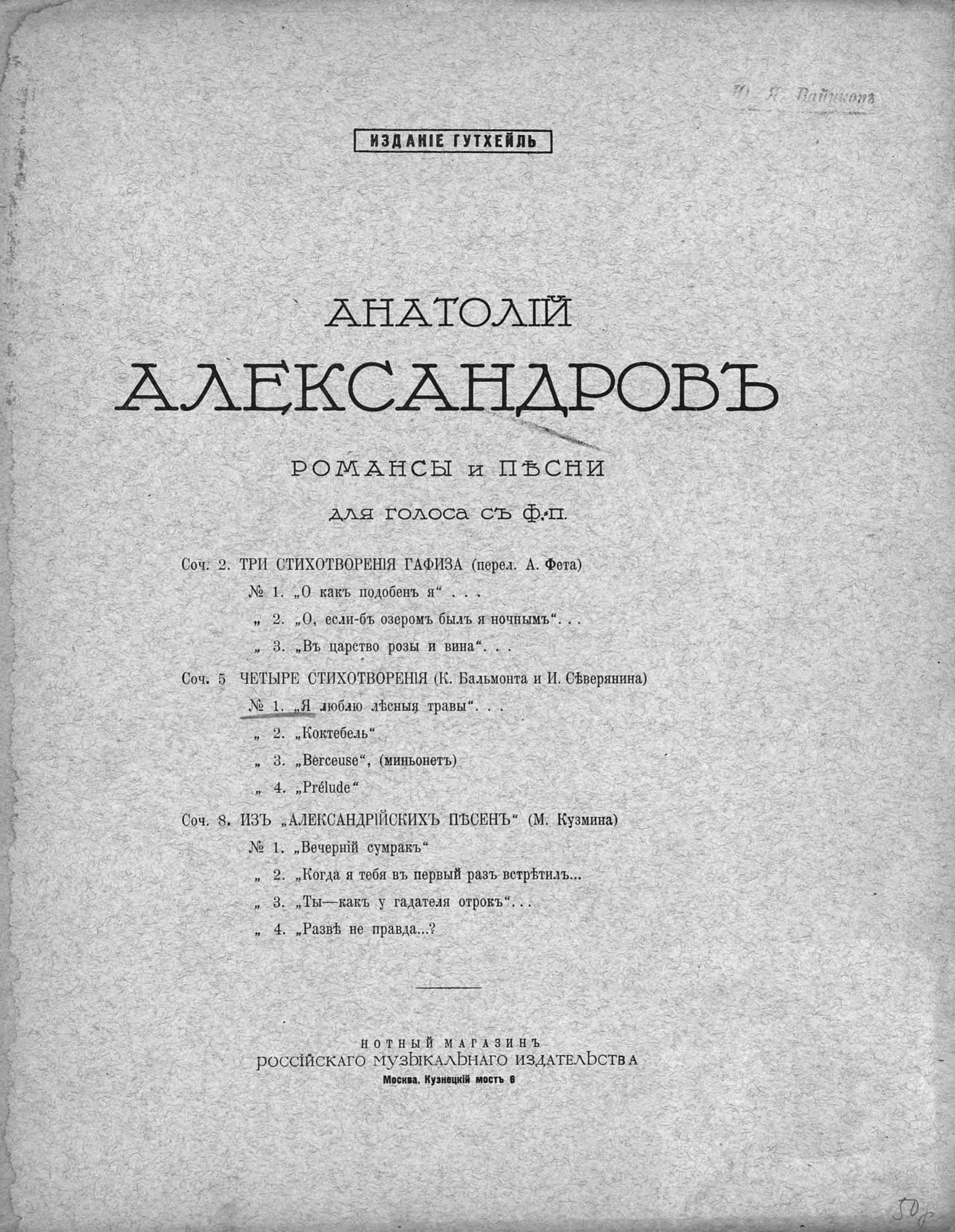 Перешедшие в общественное достояние материалы электронного фонда ЦГПБ им. В.В. Маяковского. Сведения о издательстве или типографии: А. Гутхейль. Место издания: Москва
