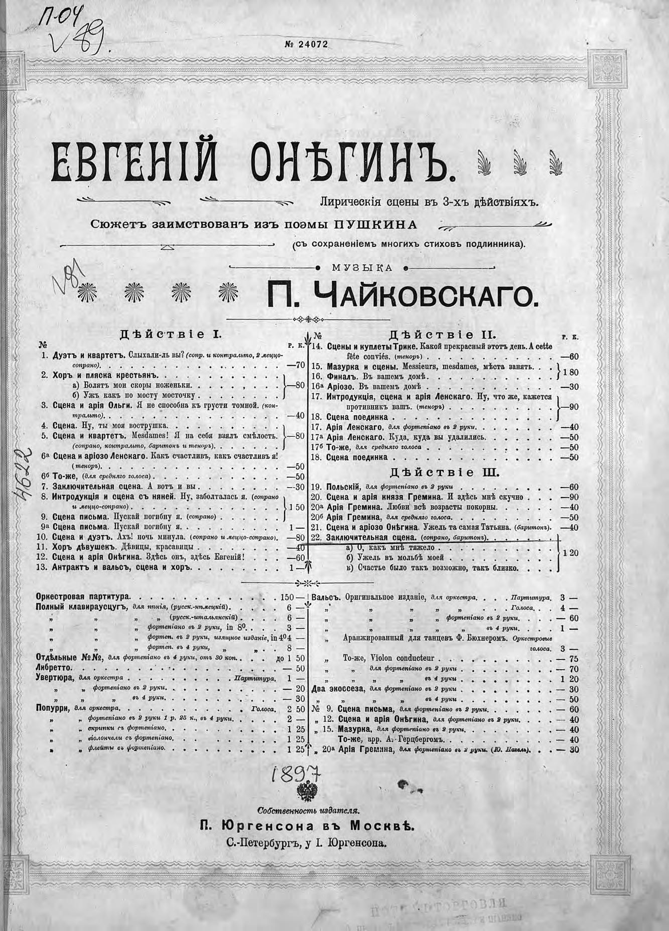 Перешедшие в общественное достояние материалы электронного фонда ЦГПБ им. В.В. Маяковского. Сведения о издательстве или типографии: П. Юргенсон. Место издания: Москва