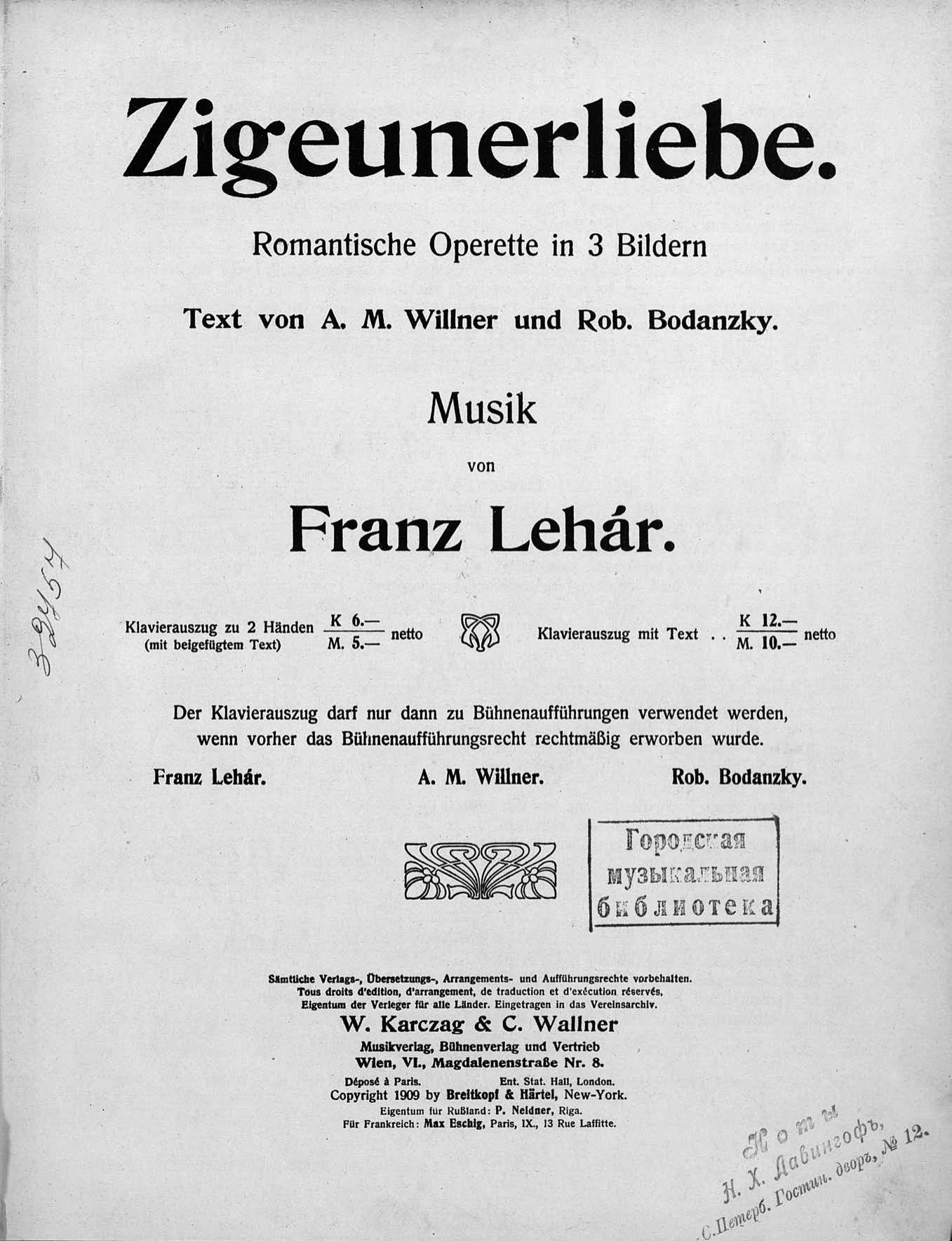 Перешедшие в общественное достояние материалы электронного фонда ЦГПБ им. В.В. Маяковского. Сведения о издательстве или типографии: W. Karczag & C. Wallner. Место издания: Вена