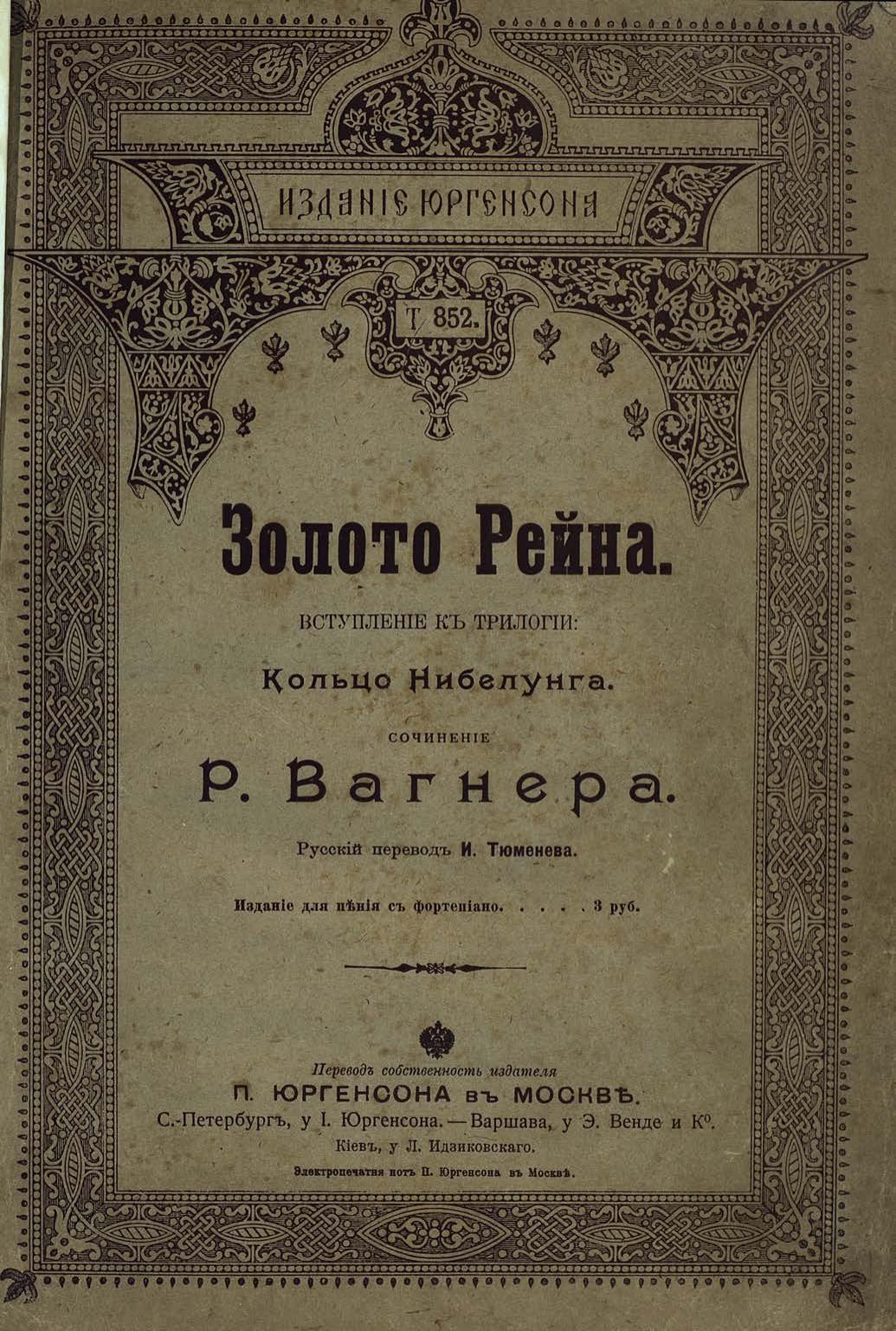 Перешедшие в общественное достояние материалы электронного фонда ЦГПБ им. В.В. Маяковского. Сведения о издательстве или типографии: П. Юргенсон. Место издания: Москва