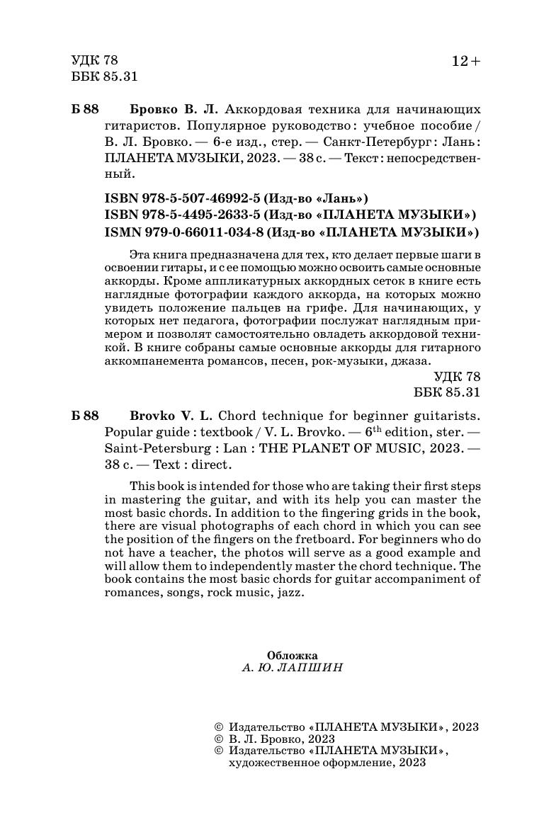 Эта книга предназначена для тех, кто делает первые шаги в освоении гитары, и с ее помощью можно освоить самые основные аккорды. Кроме аппликатурных аккордных сеток в книге есть наглядные фотографии каждого аккорда, на которых можно увидеть положение пальцев на грифе. Для начинающих, у которых нет педагога, фотографии послужат наглядным примером и позволят самостоятельно овладеть аккордовой техникой. В книге собраны самые основные аккорды для гитарного аккомпанемента романсов, песен, рок-музыки, джаза.
