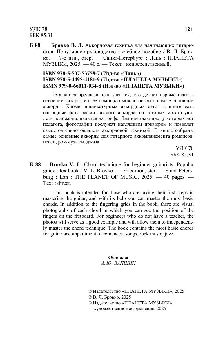 Эта книга предназначена для тех, кто делает первые шаги в освоении гитары, и с ее помощью можно освоить самые основные аккорды. Кроме аппликатурных аккордных сеток в книге есть наглядные фотографии каждого аккорда, на которых можно увидеть положение пальцев на грифе. Для начинающих, у которых нет педагога, фотографии послужат наглядным примером и позволят самостоятельно овладеть аккордовой техникой. В книге собраны самые основные аккорды для гитарного аккомпанемента романсов, песен, рок-музыки, джаза.