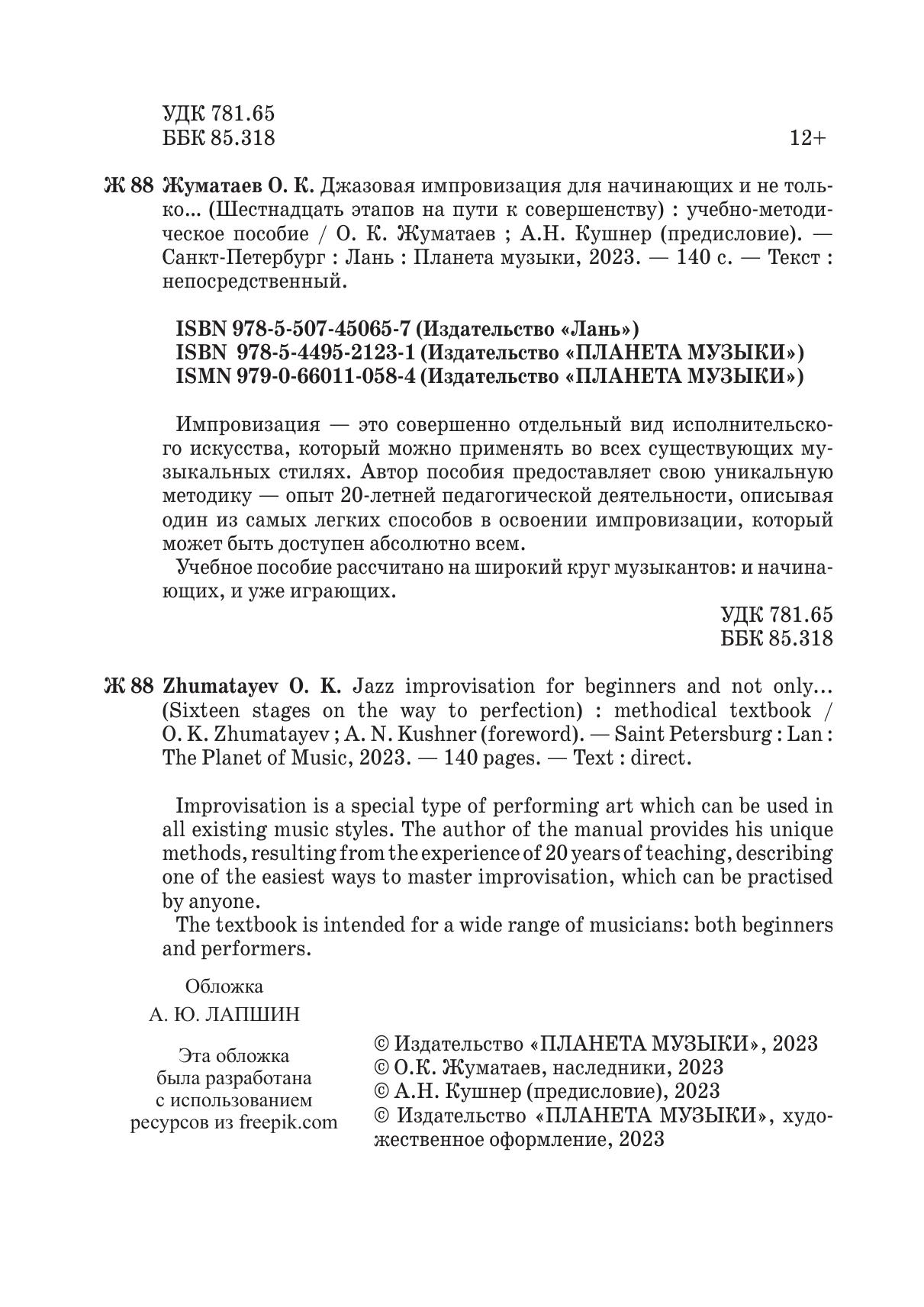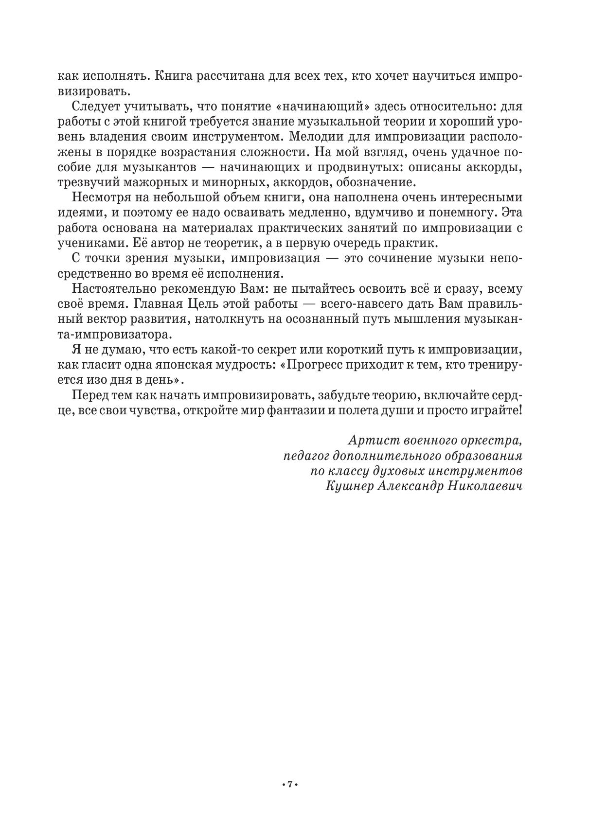 Импровизация — это совершенно отдельный вид исполнительского искусства, который можно применять во всех существующих музыкальных стилях. Автор пособия предоставляет свою уникальную методику — опыт 20-летней педагогической деятельности, описывая один из самых легких способов в освоении импровизации, который может быть доступен абсолютно всем.
