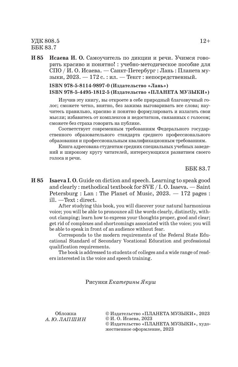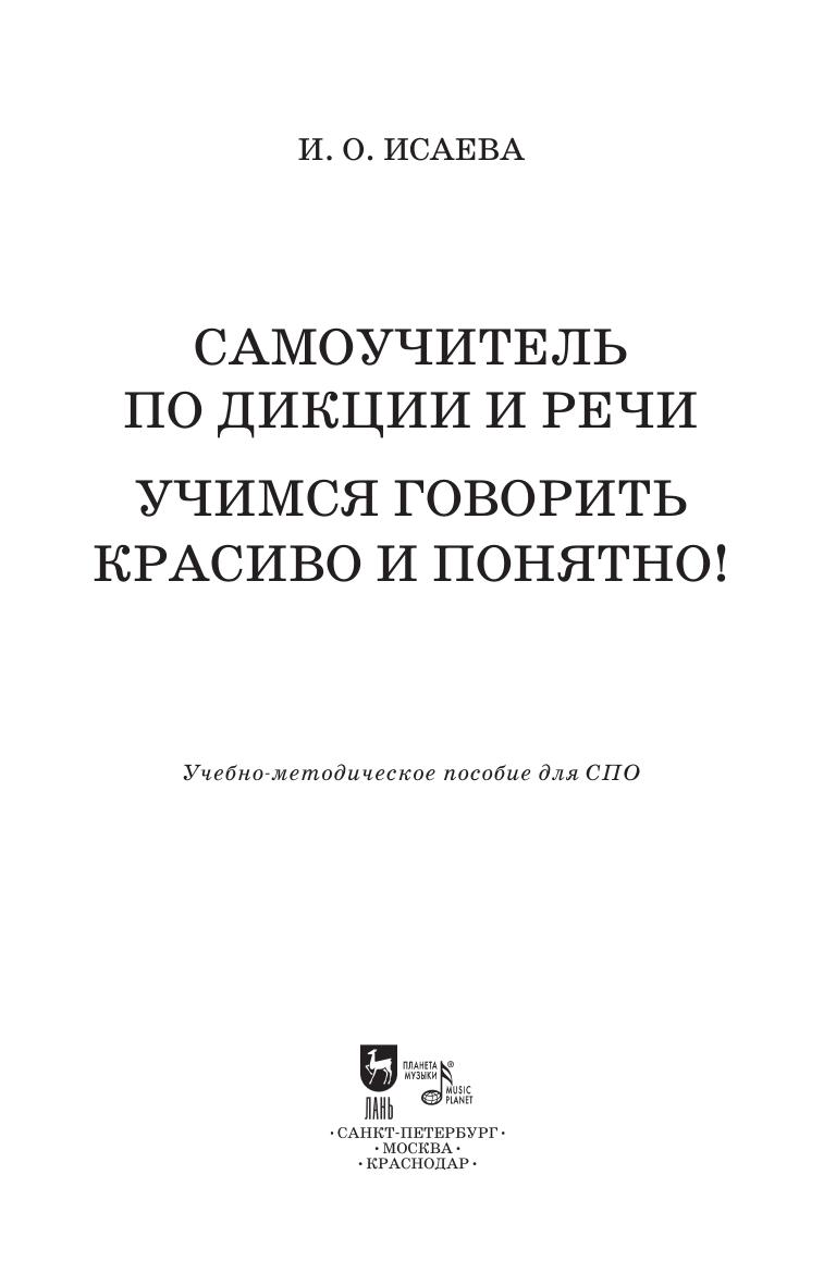 Corresponds to the modern requirements of the Federal State Educational Standard of Secondary Vocational Education and professional qualification requirements. The book is addressed to students of colleges and a wide range of readers interested in the voice and speech training.