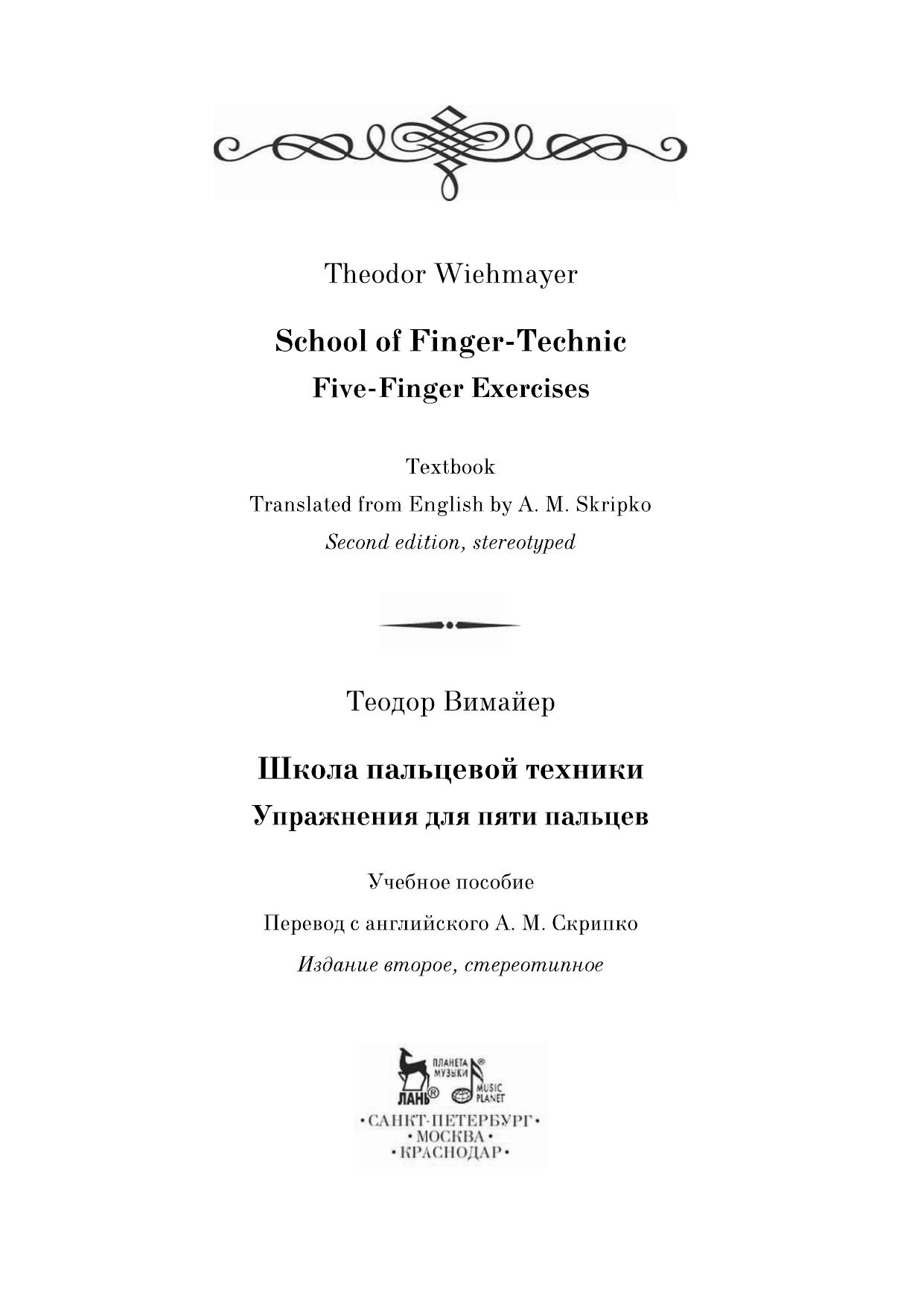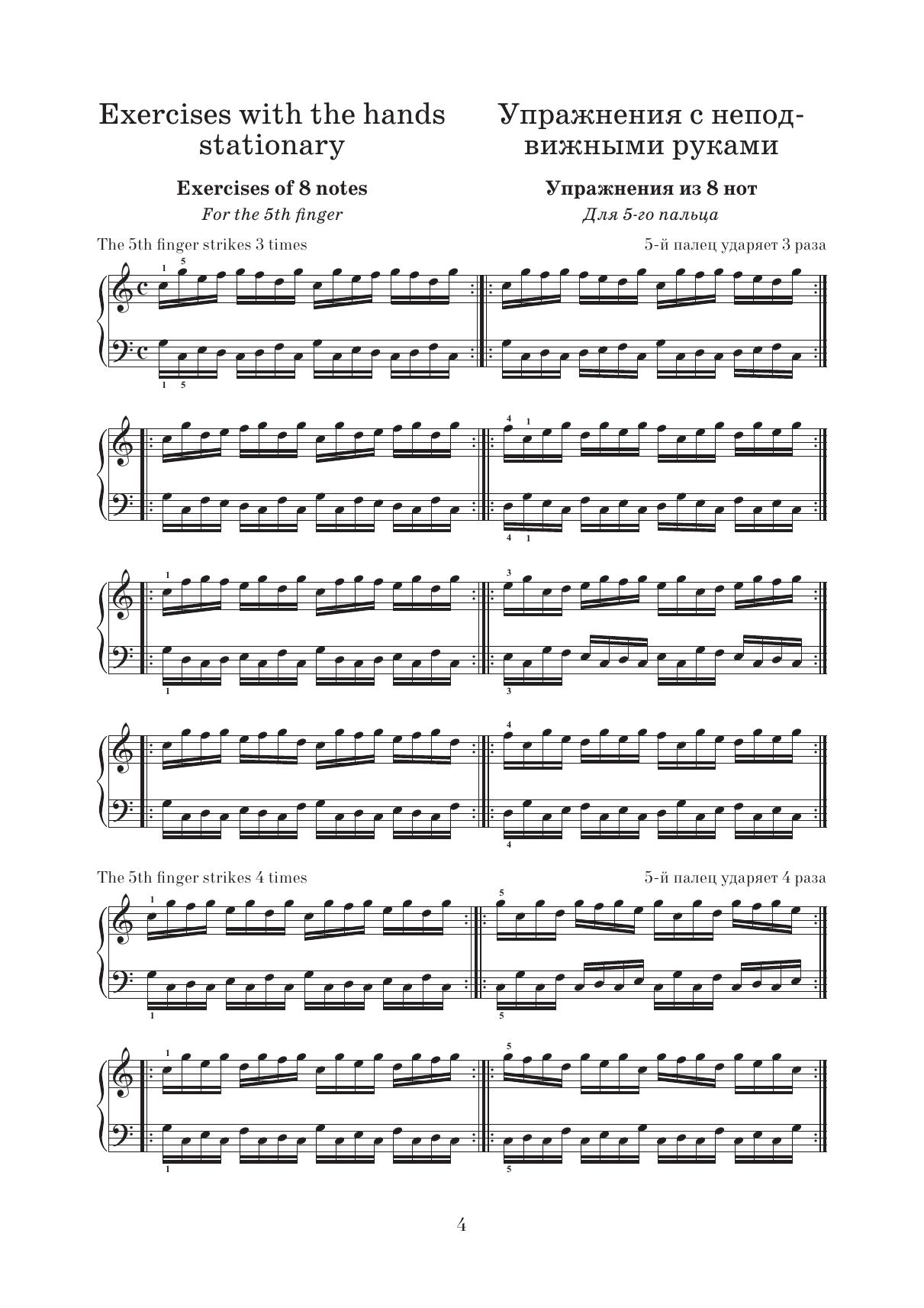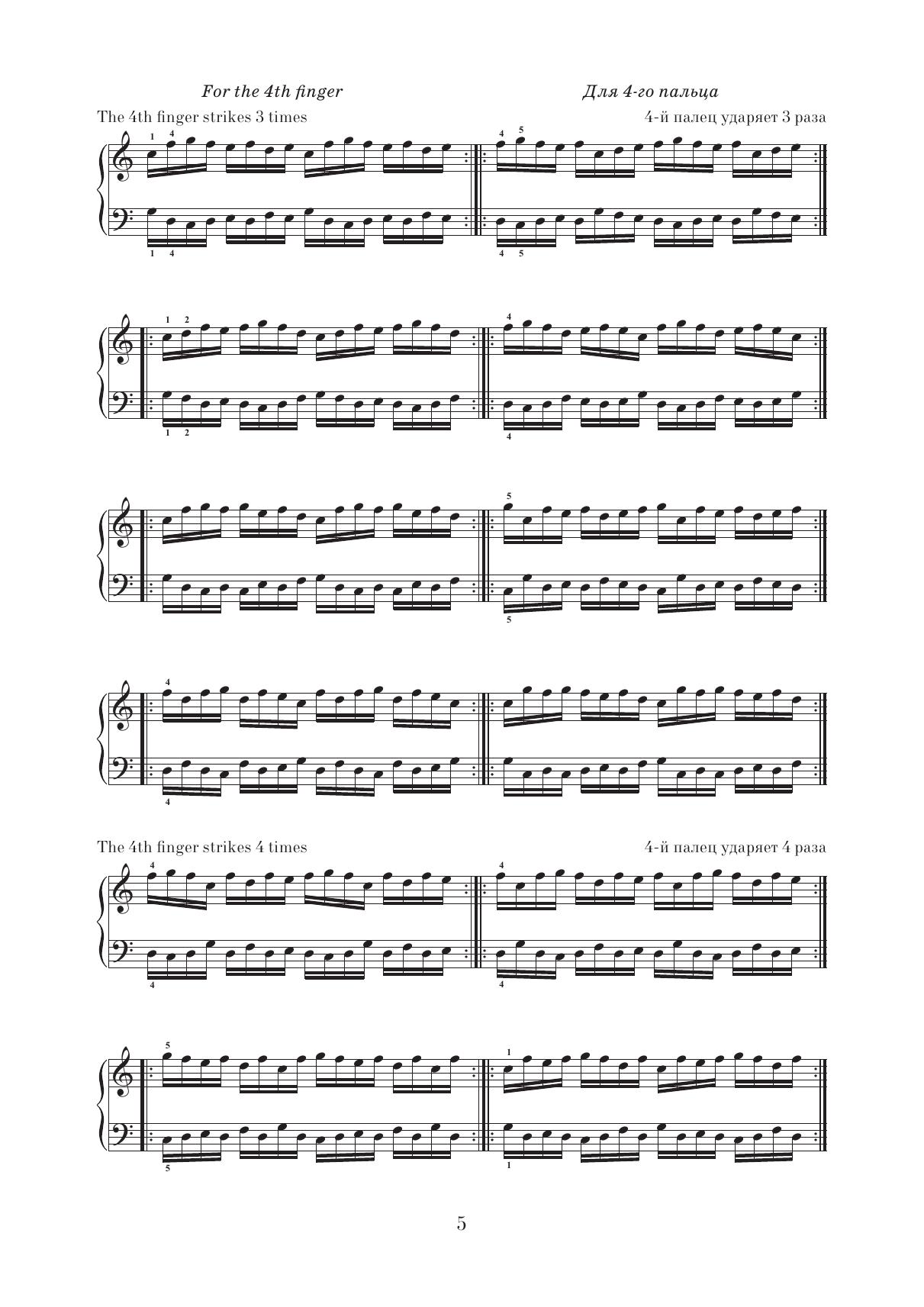 Школа пальцевой техники. Упражнения для пяти пальцев
