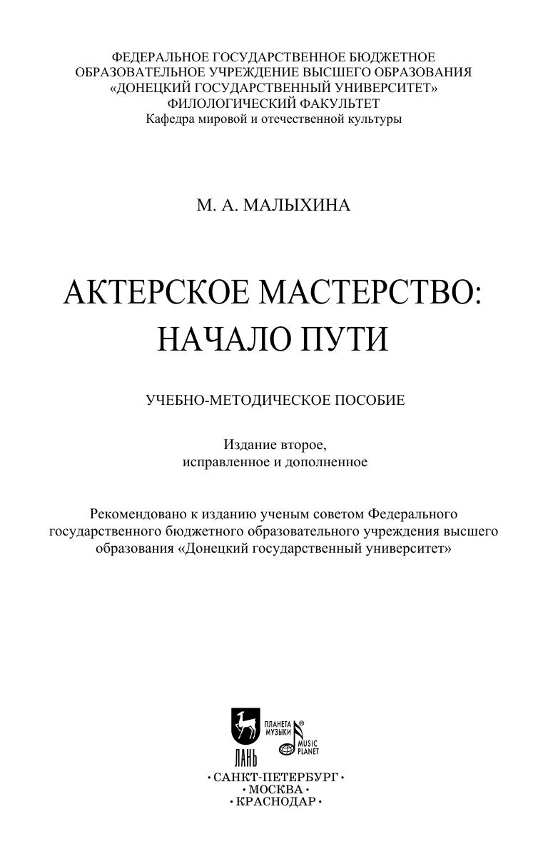 В учебно-методическом пособии анализируются некоторые аспекты профессиональной актёрской подготовки на разных этапах обучения, предложены оригинальные авторские упражнения и разработки занятий по отдельным темам из педагогической практики автора. Для студентов актёрской специализации, театральных педагогов, артистов и режиссёров театра, руководителей любительських театральных студий, студенческих и школьных театров, а также для всех, чьи интересы связаны с театральным искусством. The author analyzes some aspects of professional acting training at different stages of training and offers the original authorial exercises and curriculums on certain topics based on the author’s experience. The book is intended for students specializing in acting, theater educators, theater artists and directors, heads of amateur theater studios, student and school theaters, as well as for anyone interested in the art of theater.