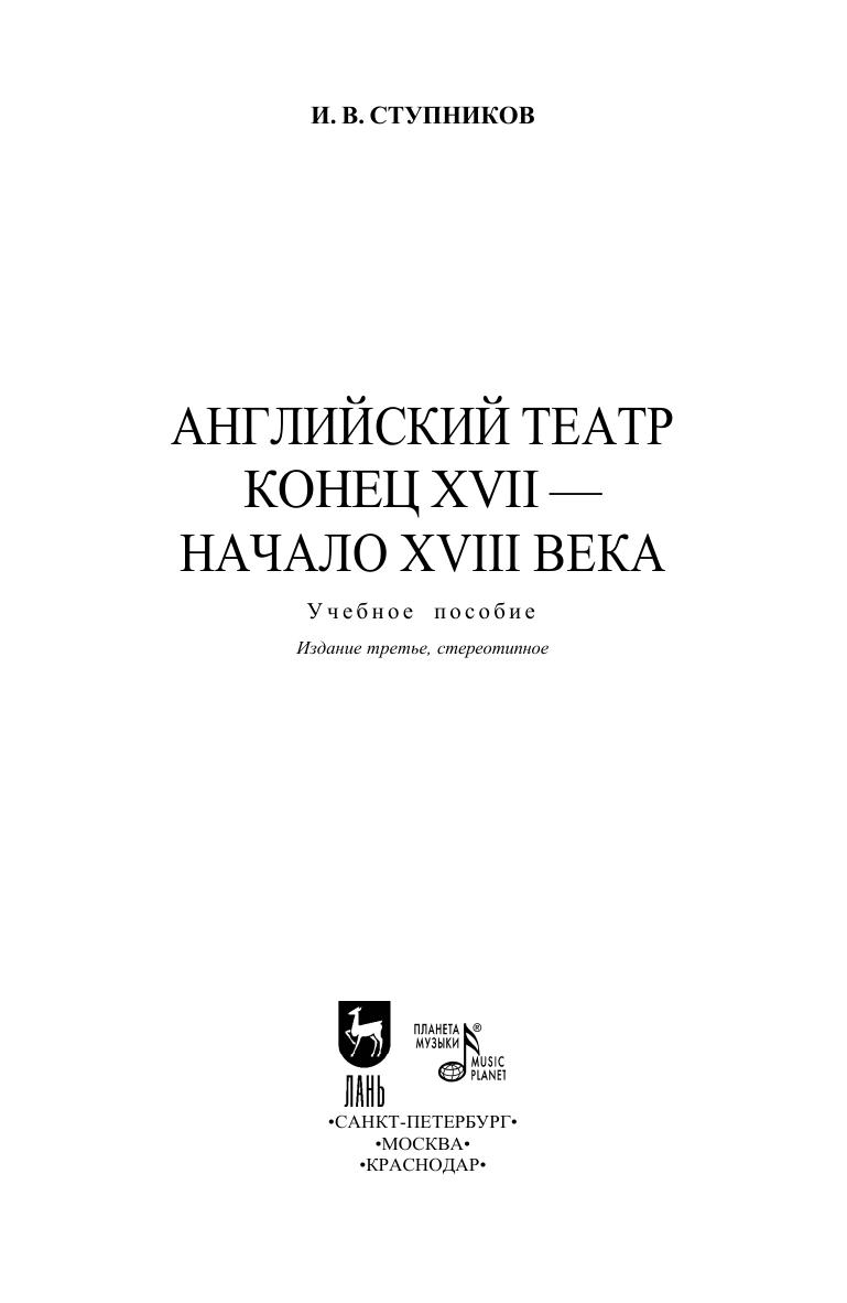 Книга посвящена одному из интереснейших периодов истории английского театра. В ней собраны уникальные сведения, касающиеся многих сторон его развития: структура театральных зданий, актерское искусство, процессы создания спектакля, социальное положение актеров, появление на подмостках женщины-актрисы. театральная режиссура, музыка и танец в драматическом спектакле. Немало интересного отведено в книге и нравам, царившим как в зрительном зале, так и за кулисами. Книга рассчитана как на специалистов, так и на широкий круг любителей театрального искусства. The book is dedicated to one of the most interesting periods in the history of English theater. It contains unique information concerning many aspects of its development: the structure of theater buildings, acting art, the processes of creating a performance, the social status of actors, the appearance of a woman-actress on the stage, theater direction, music and dance in a drama performance. A lot of interesting things are given in the book and the morals that reigned both in the auditorium and behind the scenes. The book is intended both for specialists and for a wide range of theater lovers.