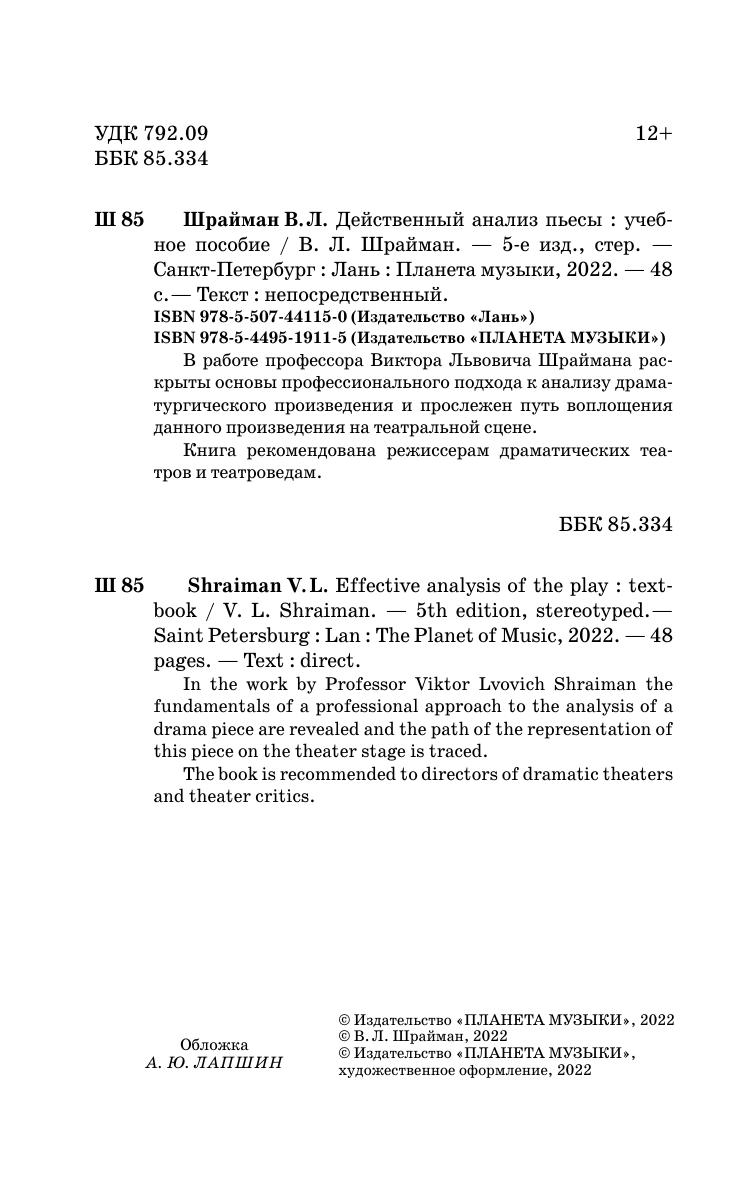 Книга рекомендована режиссерам драматических театров и театроведам.
