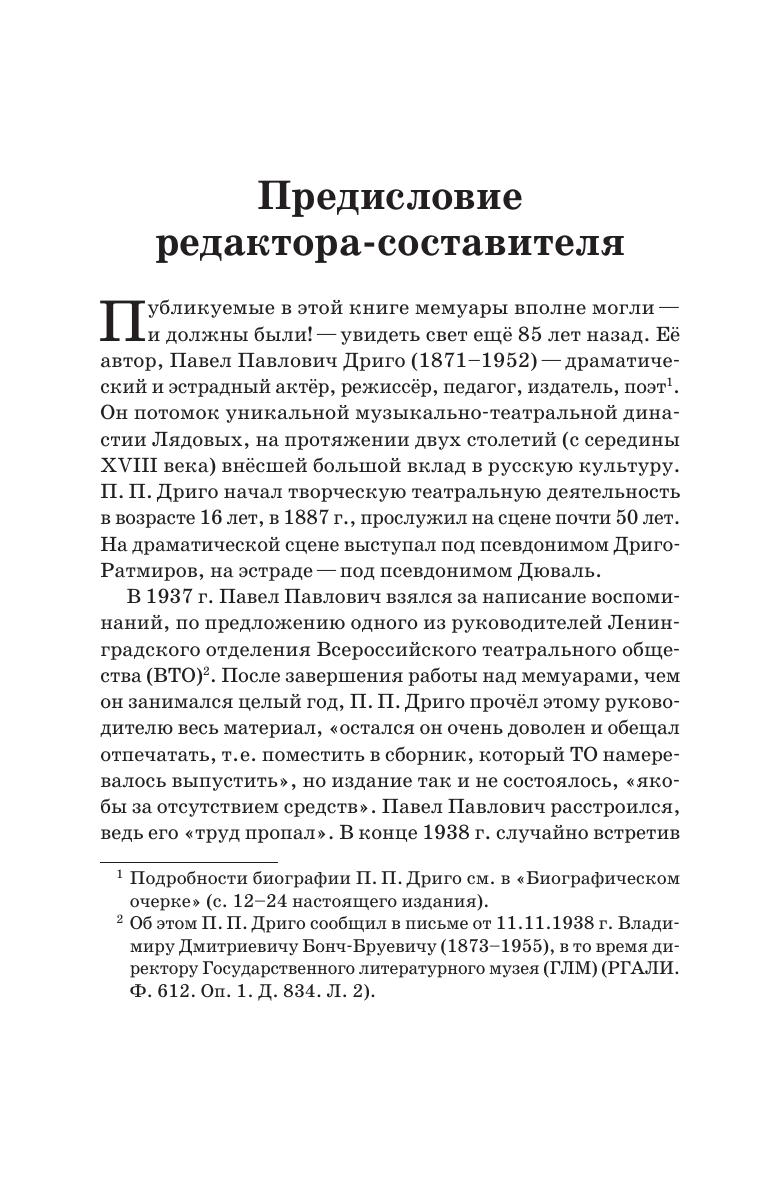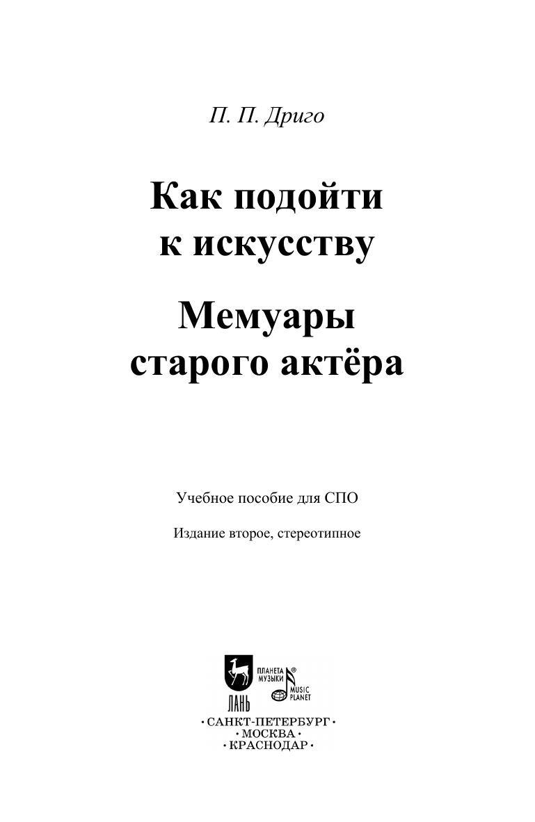 Павел Павлович Дриго (1871–1952) – актёр, режиссёр, педагог, издатель, поэт. Потомок музыкально-театральной династии Лядовых. Дриго прослужил на провинциальной театральной сцене почти 50 лет. Он выходил на сцену вместе с В. Ф. Комиссаржевской, М. Г. Савиной, М. В. Дальским, В. П. Далматовым, А. А. Нильским. В книге описана театральная жизнь тех лет, представлен разбор классических пьес русского репертуара. В биографическом очерке, написанном Игорем Прохоровым — исследователем династии Лядовых, приведены сведения о Дриго и о его семье. В книге впервые публикуются фотографии из личных архивов потомков братьев Дриго. Соответствует современным требованиям Федерального государственного образовательного стандарта среднего профессионального образования и профессиональным квалификационным требованиям. Пособие проедназначено студентам и преподавателям средних специальных учебных заведений. Pavel Pavlovich Drigo (1871–1952) was an actor, theatre director, educator, publisher, poet. Descendant of the Lyadov musical and theatrical dynasty. Drigo acted on the provincial towns theatre stage for almost 50 years. He went on stage together with V. F. Komis-sarzhevskaya, M. G. Savina, M. V. Dalsky, V. P. Dalmatov, A. A. Nilsky. The author describes the theatrical life between the late 1880s and early 1900s, presents the analysis of classical plays of the Russian theatre repertoire. The biographical sketch written by Igor Prokhorov, a researcher of the Lyadov dynasty, gives information on Drigo and his family. The photos from the personal archives of the descendants of the Drigo brothers are published for the first time. Corresponds to the modern requirements of the Federal State Educational Standard of Secondary Vocational Education and professional qualification requirements. The book is intended for students and teachers of colleges.