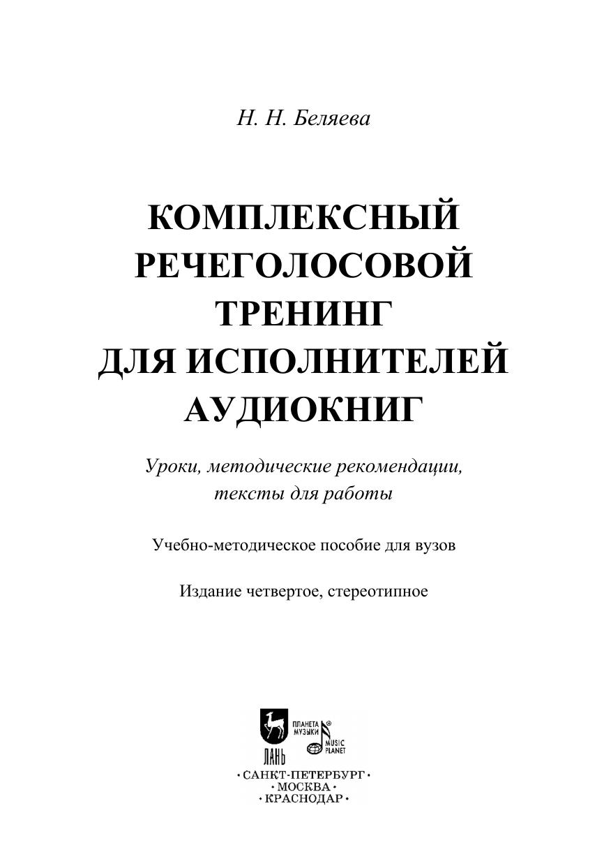Комплексный речеголосовой тренинг для исполнителей аудиокниг. Уроки, методические рекомендации, тексты для работы