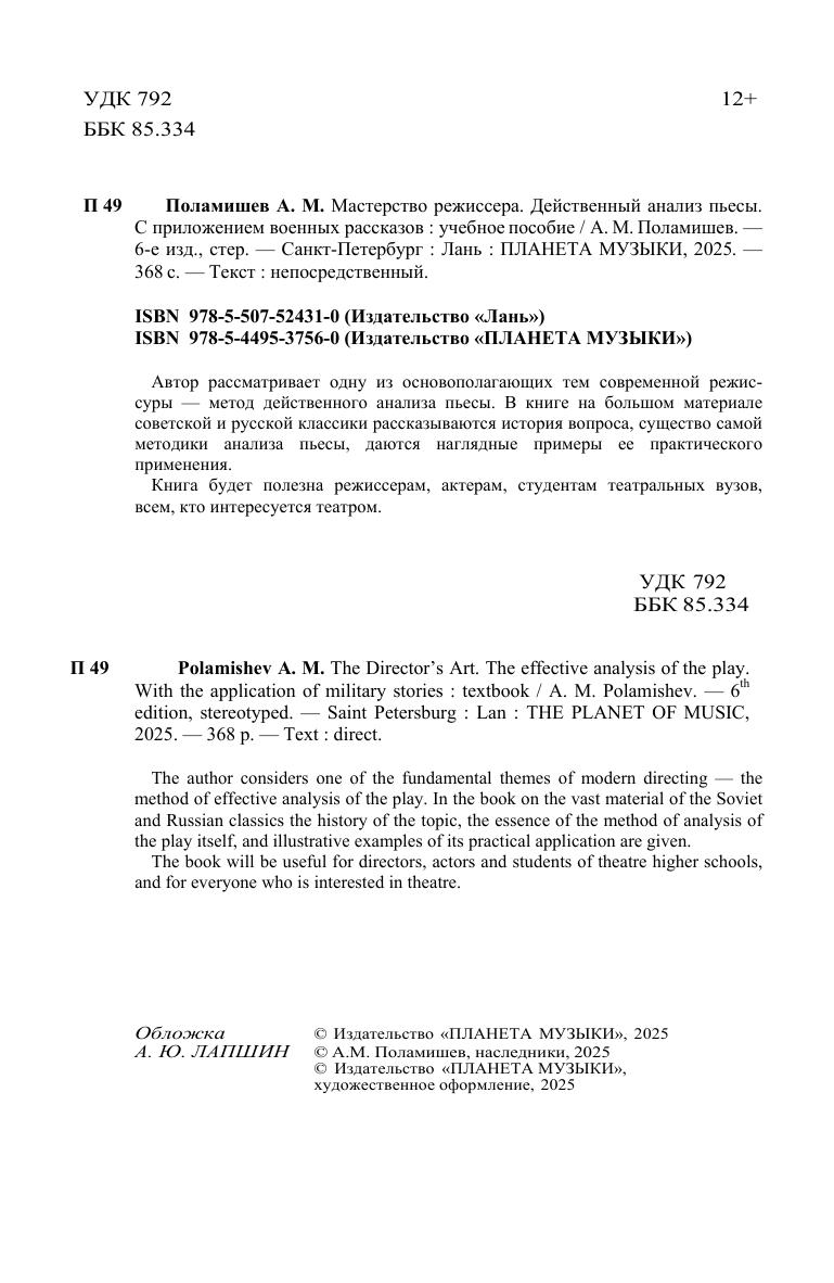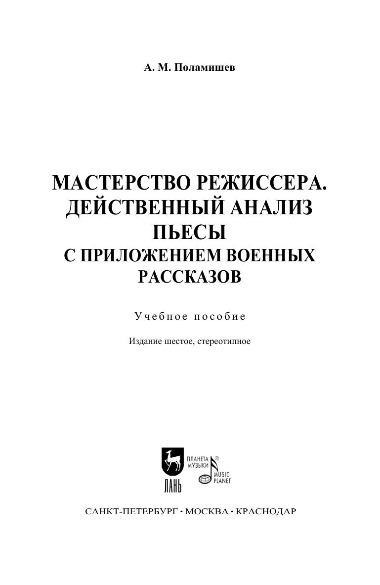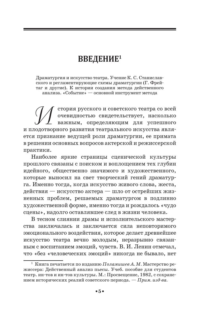 Автор рассматривает одну из основополагающих тем современной режиссуры - метод действенного анализа пьесы. В книге на большом материале советской и русской классики рассказываются история вопроса, существо самой методики анализа пьесы, даются наглядные примеры ее практического применения. В издание также включены два военных рассказа, ранее не публиковавшиеся. "Драматургия" показывает, что эти новеллы написаны театральным режиссером, и скорее похожи на сценарий для фильма или спектакля. Книга будет полезна режиссерам, актерам, студентам театральных вузов, всем, кто интересуется театром.