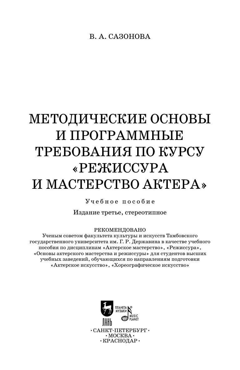 Методические основы и программные требования по курсу «Режиссура и мастерство актера»
