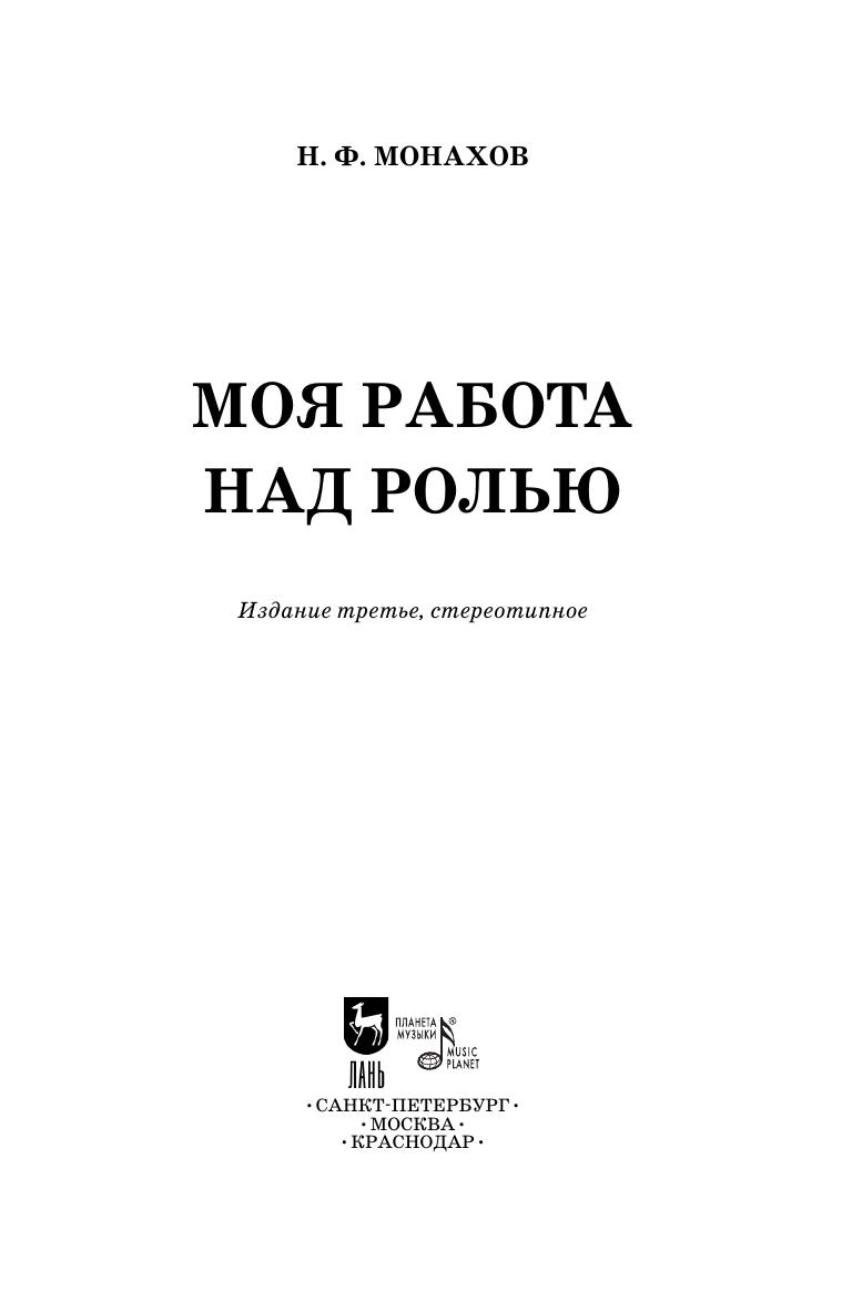 The book is a transcript of the report "My work on the role" of Nikolai Feodorovich Monakhov (1875-1936), an outstanding Soviet actor of theater and cinema. He talks about what he had to overcome on his way to the top of the art. This story is interesting and useful because it reflects the individuality of Monakhov as a true artist of the scene. This small book, of course, doesn’t reveal all the secrets of Monakhov's work, but it is of interest to all who are involved in the theater.