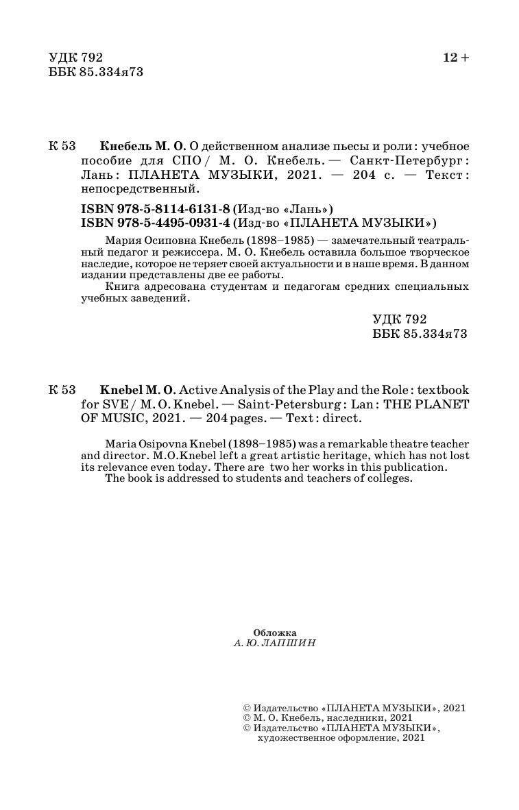Мария Осиповна Кнебель (1898–1985) — замечательный театральный педагог и режиссер. М. О. Кнебель оставила большое творческое наследие, которое не теряет своей актуальности и в наше время. В данном издании представлены две ее работы.