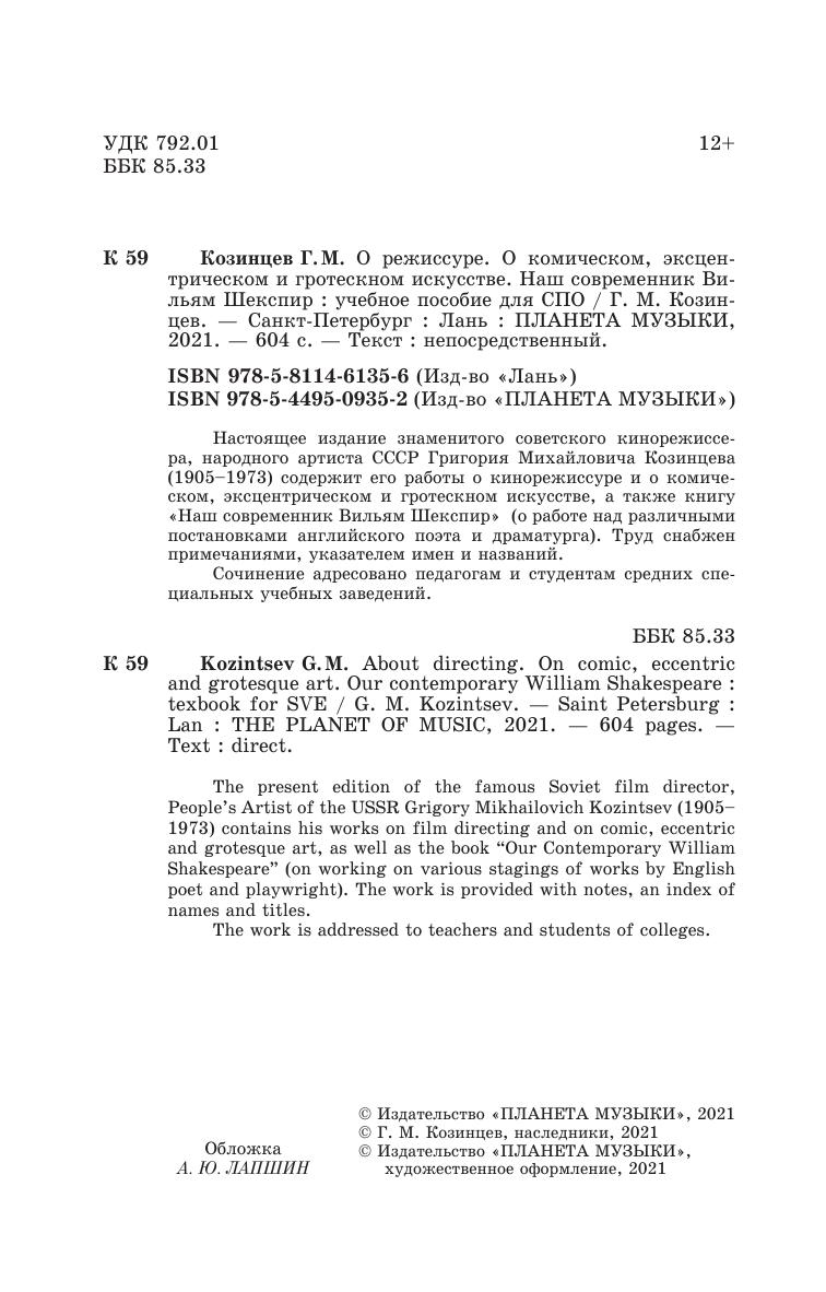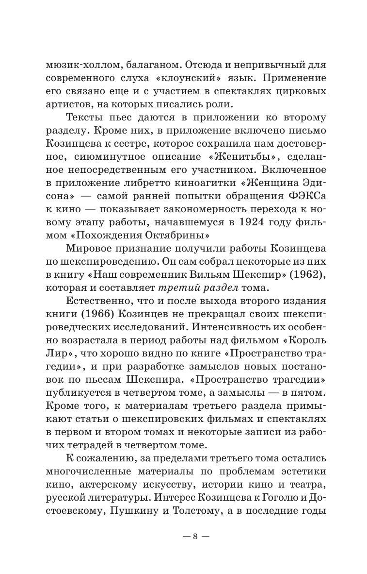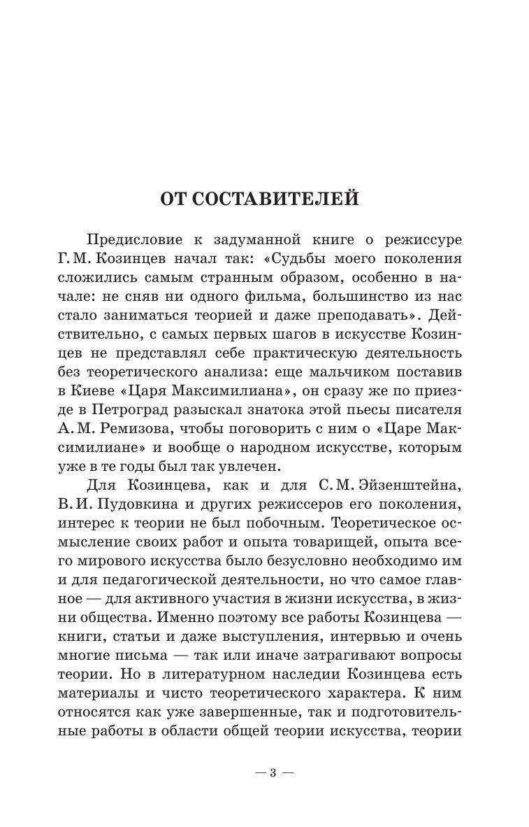 Настоящее издание знаменитого советского кинорежиссера, народного артиста СССР Григория Михайловича Козинцева (1905-1973) содержит его работы о кинорежиссуре и о комическом, эксцентрическом и гротескном искусстве, а также книгу «Наш современник Вильям Шекспир» (о работе над различными постановками английского поэта и драматурга). Труд снабжен примечаниями, указателем имен и названий.