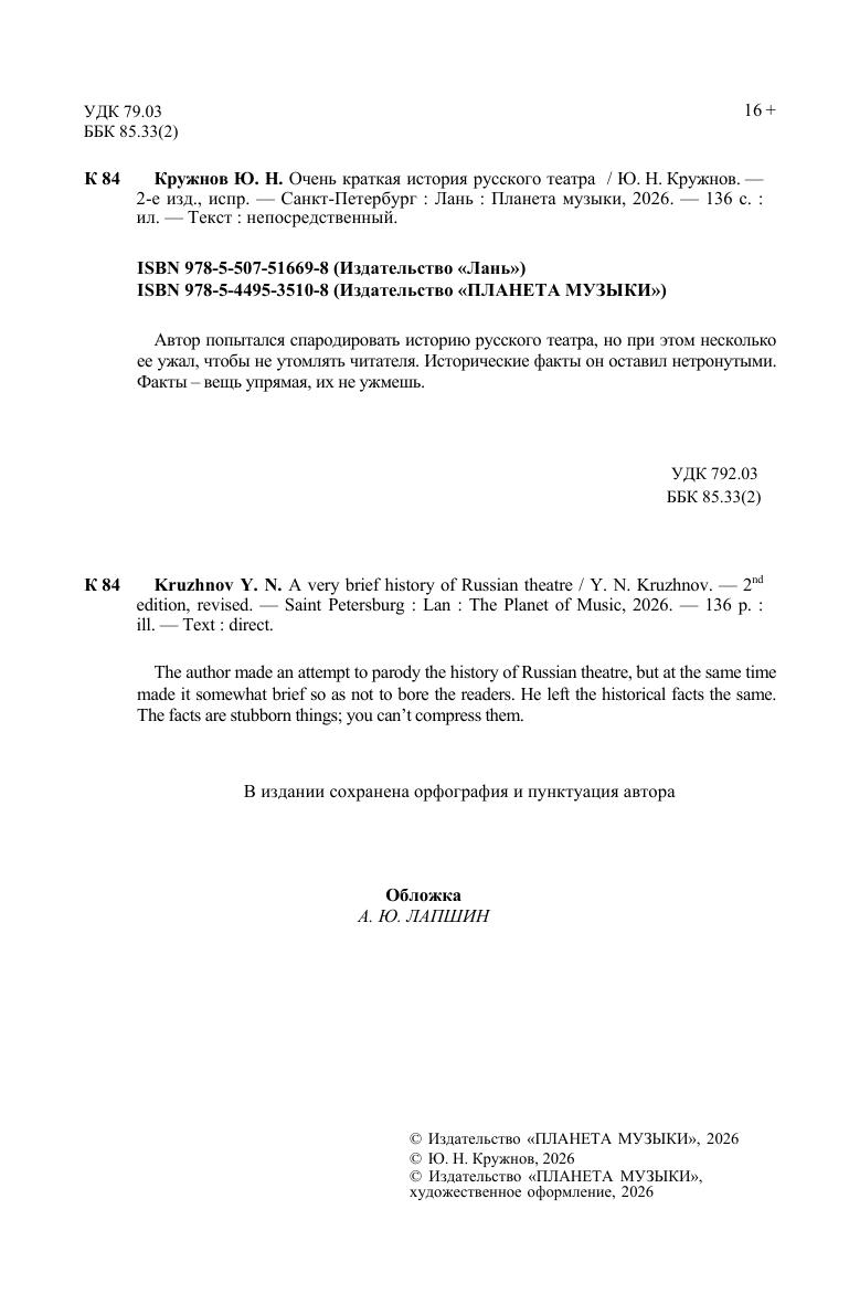 Автор попытался спародировать историю русского театра, но при этом несколько её ужал, чтобы не утомлять читателя. Исторические факты он оставил нетронутыми. Факты – вещь упрямая, их не ужмёшь. The author made an attempt to parody the history of Russian theatre, but at the same time made it somewhat brief so as not to bore the readers. He left the historical facts the same. The facts are stubborn things, you can’t compress them.