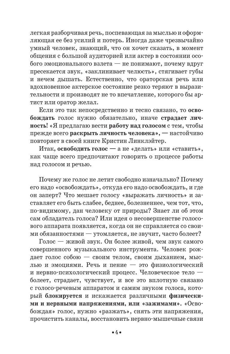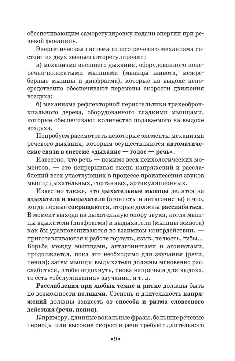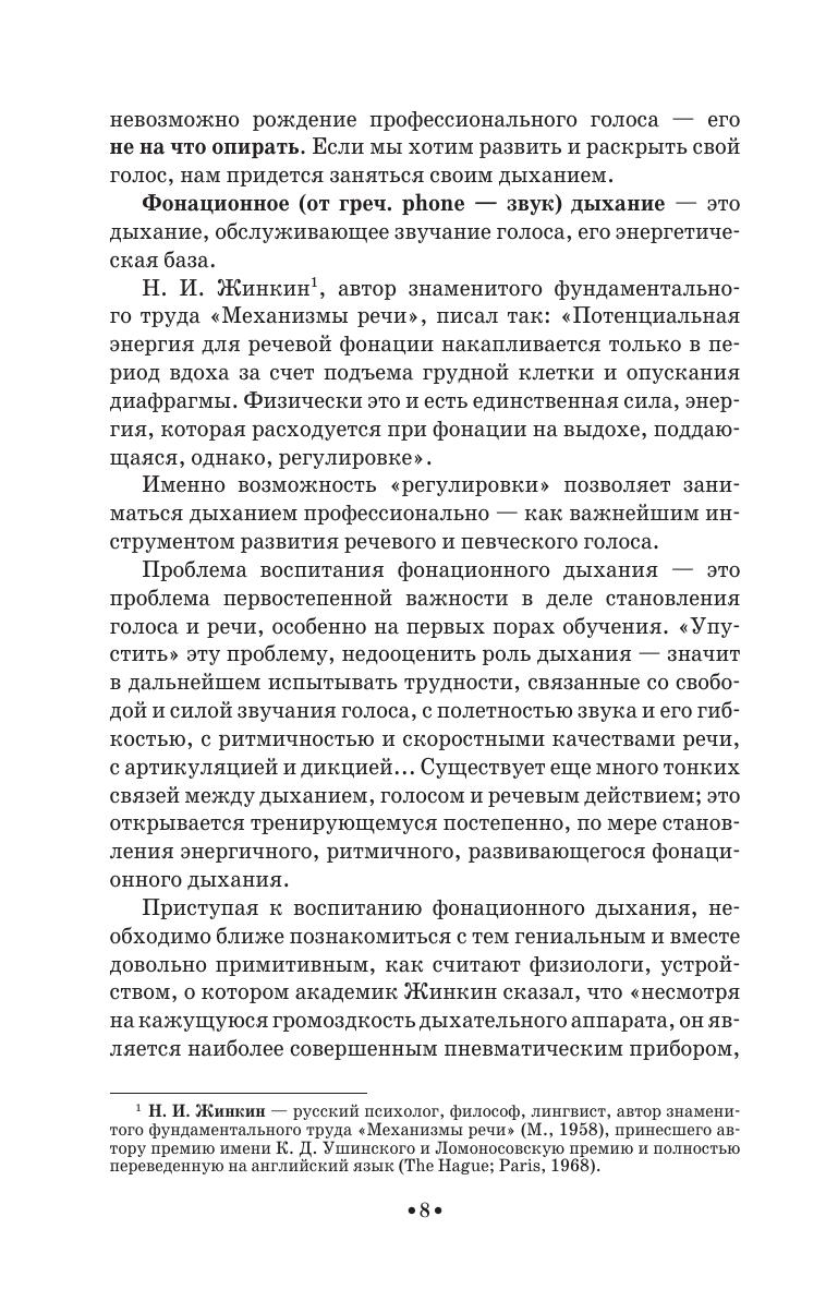 Наряду с теоретическими выкладками, касающимися проблем постановки дыхания и голоса, автор предлагает большое количество упражнений, систематизированных по принципам их воздействия на дыхательный и голосовой аппарат и предполагающих прохождение полноценного курса воспитания профессионального дыхания.