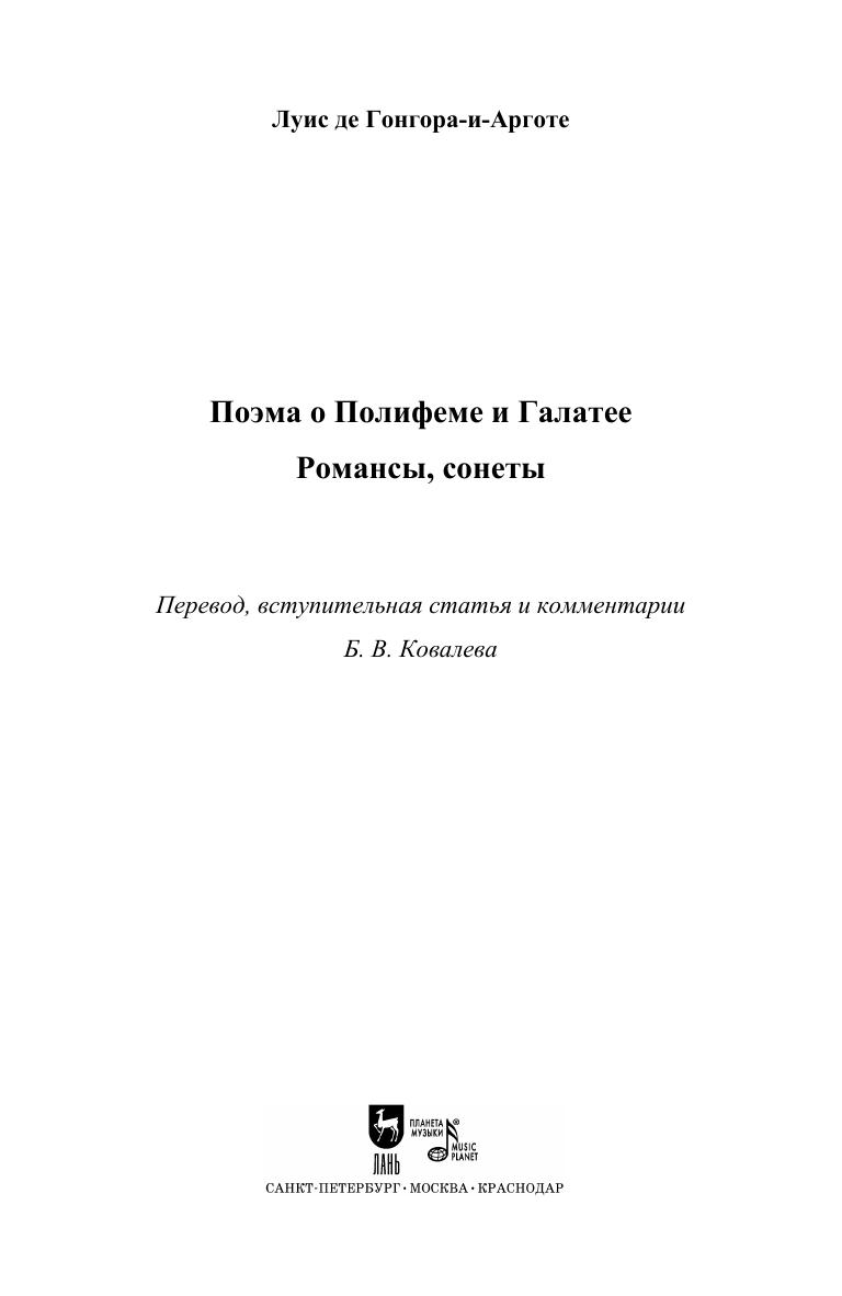 Поэма о Полифеме и Галатее. Романсы, сонеты