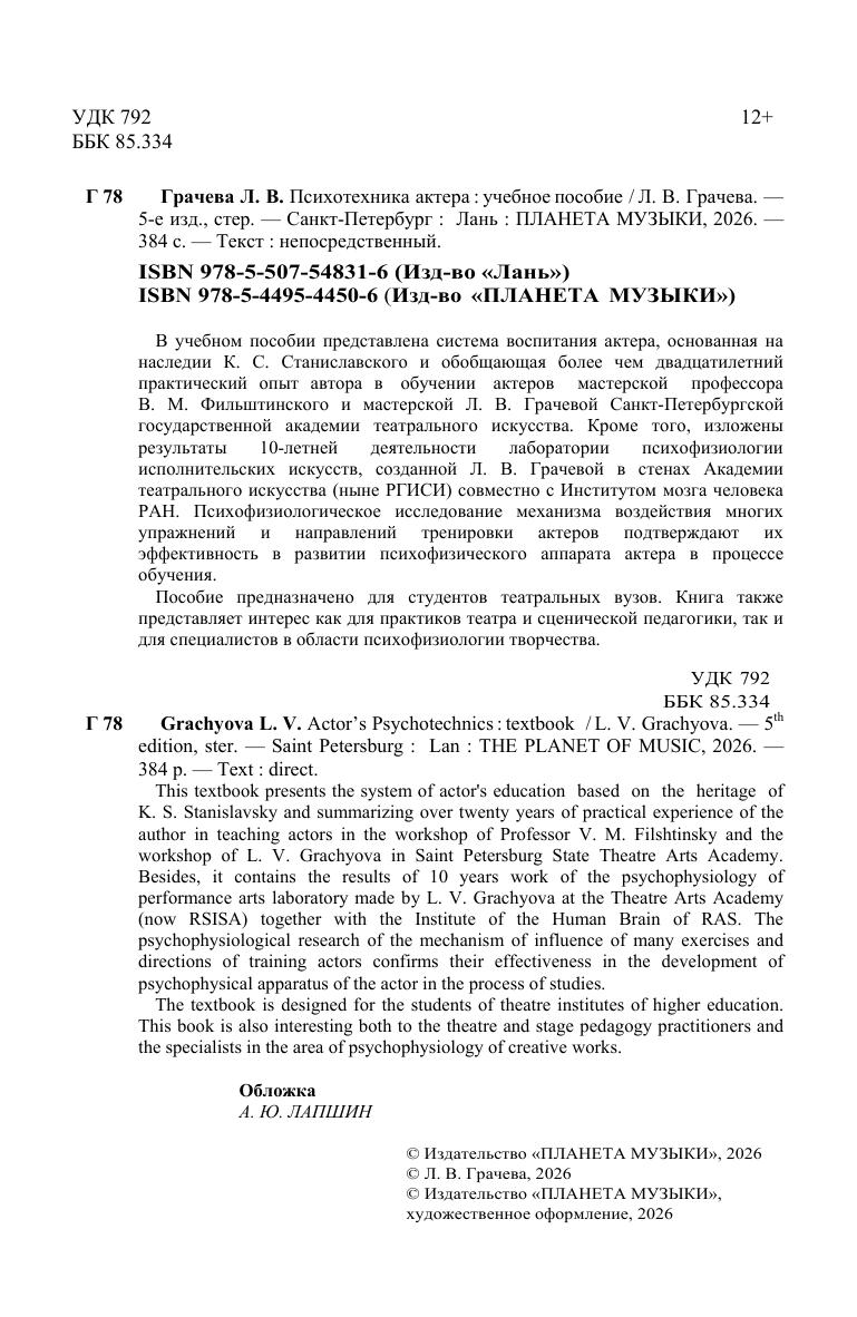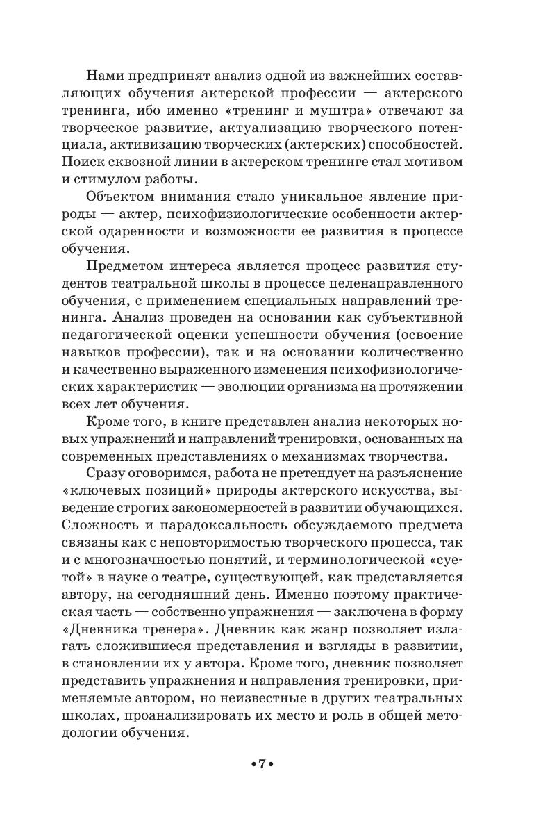 В учебном пособии представлена система воспитания актера, основанная на наследии К. С. Станиславского и обобщающая более чем двадцатилетний практический опыт автора в обучении актеров мастерской профессора В. М. Фильштинского и мастерской Л. В. Грачевой Санкт-Петербургской государственной академии театрального искусства. Кроме того, изложены результаты 10-летней деятельности лаборатории психофизиологии исполнительских искусств, созданной Л. В. Грачевой в стенах Академии театрального искусства совместно с Институтом мозга человека РАН. Психофизиологическое исследование механизма воздействия многих упражнений и направлений тренировки актеров подтверждают их эффективность в развитии психофизического аппарата актера в процессе обучения. Пособие предназначено для студентов театральных вузов. Книга также представляет интерес как для практиков театра и сценической педагогики, так и для специалистов в области психофизиологии творчества.