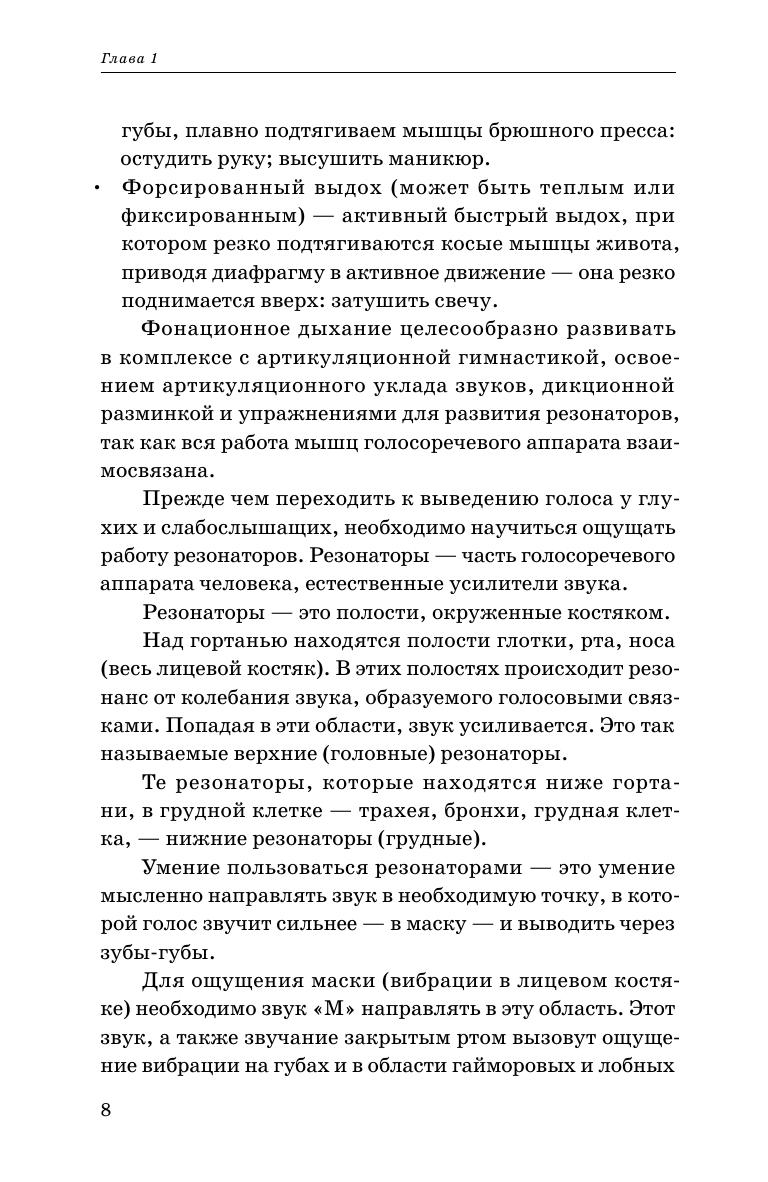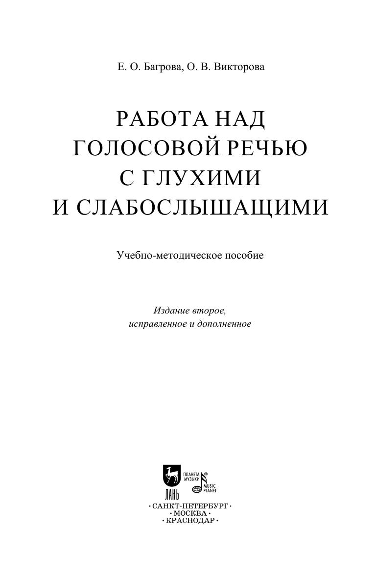 Данное учебно-методическое пособие посвящено постановке голоса у глухих и слабослышащих. В основе предложенной методики лежит многолетний опыт педагогов, работающих с людьми со слуховыми ограничениями. В настоящем издании собран практический материал по выработке правильного дыхания, дикции, голосоведения и отработки данных разделов. Пособие адресовано всем специалистам, работающим с людьми, имеющими ограничения по слуху: преподавателям и студентам, обучающимся в специализированных учебных заведениях, а также педагогам дополнительного образования специализированных любительских коллективах, и всем, кто профессионально занимается голосовой речью с людьми со слуховыми ограничениями. This methodical textbook is devoted to speech training for the deaf and hard of hearing persons. The methodology is based on the authors’ long experience of working with hard of heraing people. This edition contains practical tools on training the correct breathing, diction, voice leading and mastering these sections. The textbook is intended for any specialists working with hard of hearing people: teachers and students of studying in specialized educational insti-tutions, as well as teachers of additional education in specialized amateur groups, and all those who professionally work on speech with hard of hearing people.