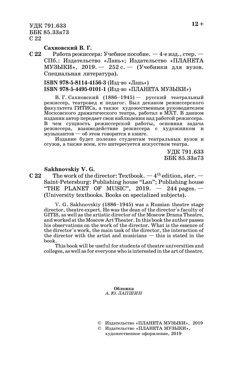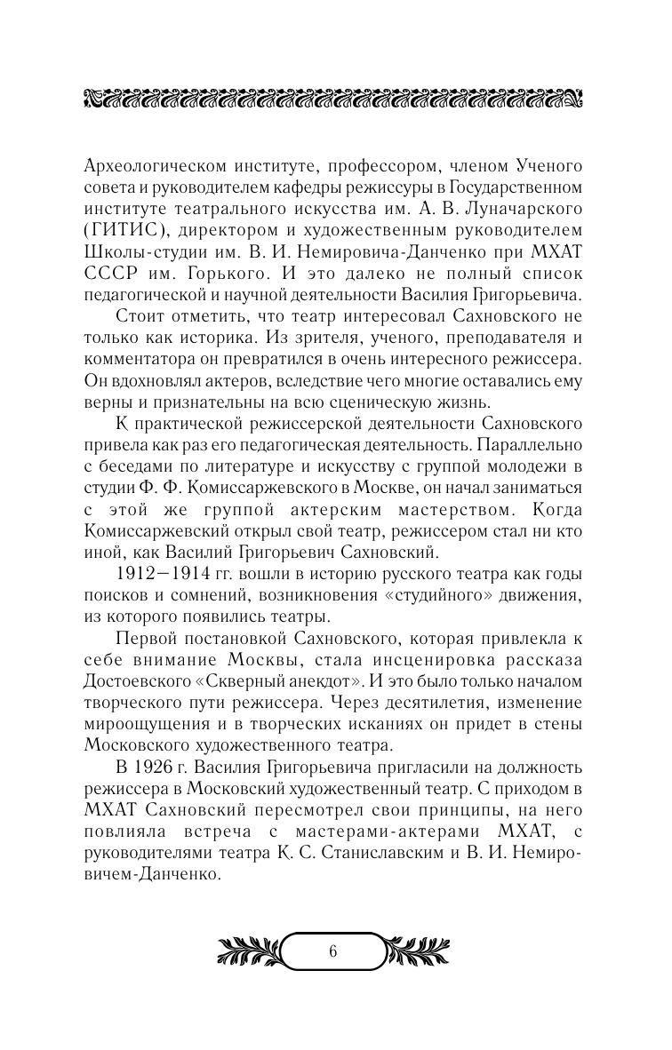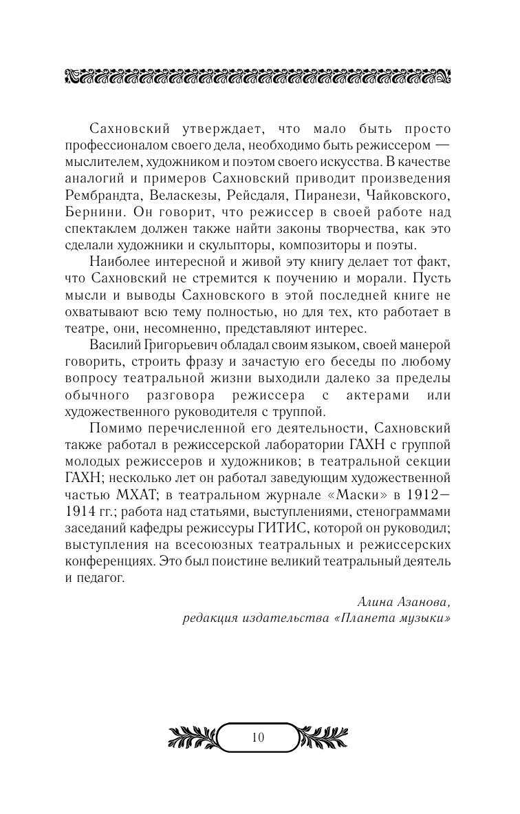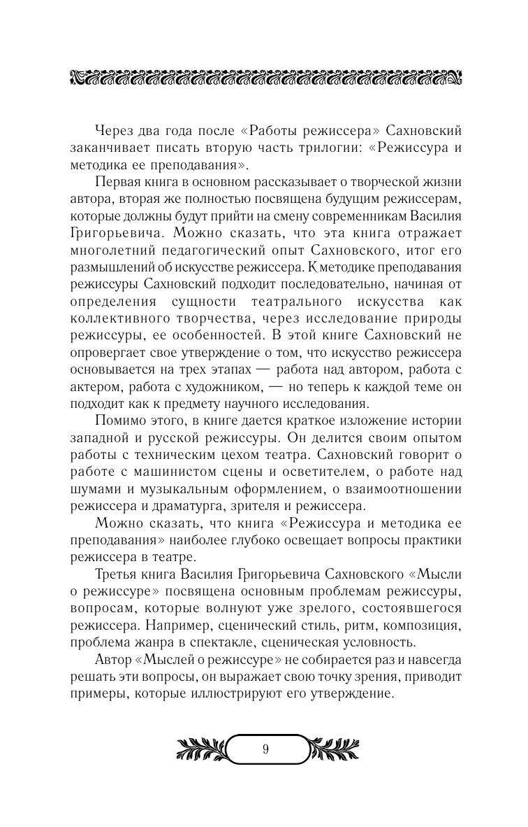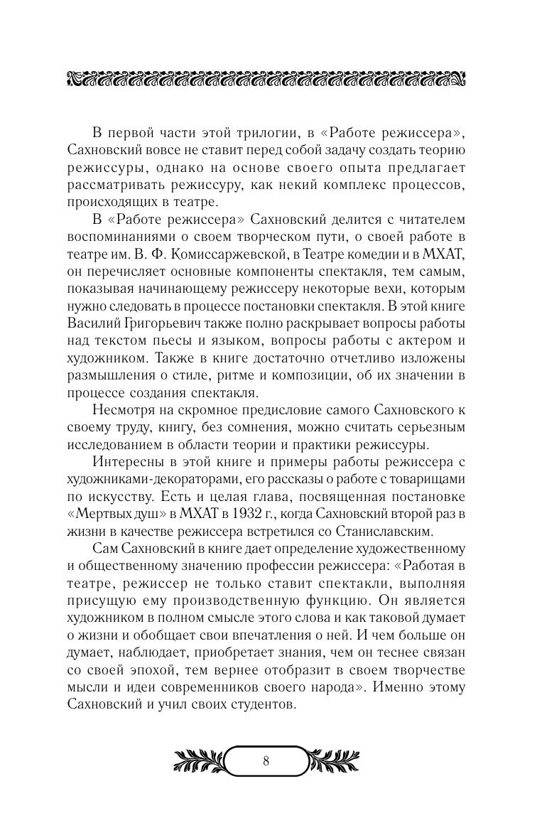 В. Г. Сахновский (1886–1945) — русский театральный режиссер, театровед и педагог. Был деканом режиссерского факультета ГИТИСа, а также художественным руководителем Московского драматического театра, работал в МХТ. В данном издании автор передает свои наблюдения над работой режиссера. В чем сущность режиссерской работы, основная задача режиссера, взаимодействие режиссера с художником и музыкантов — об этом говорится в книге.
