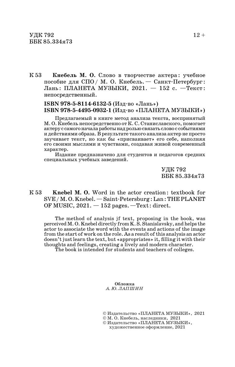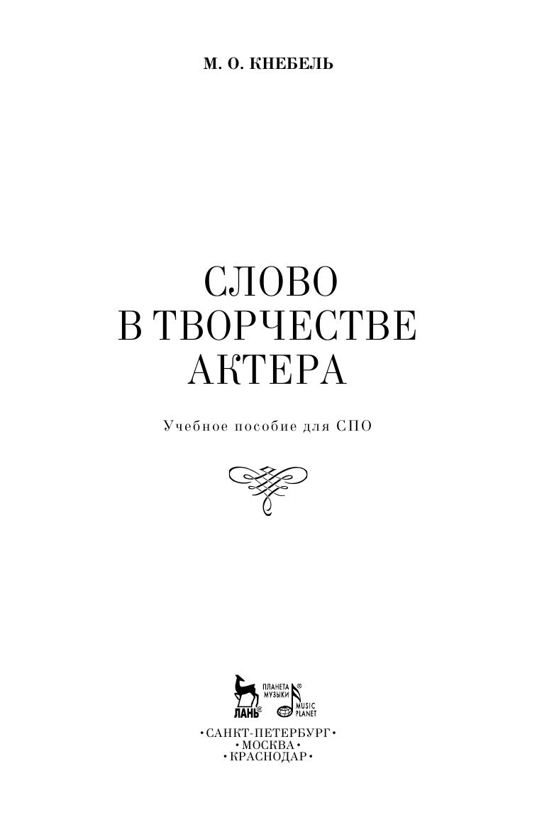 Предлагаемый в книге метод анализа текста, воспринятый М. О. Кнебель непосредственно от К. С. Станиславского, помогает актеру с самого начала работы над ролью связать слово с событиями и действиями образа. В результате такого анализа актер не просто заучивает текст, но как бы «присваивает» его себе, наполняя его своими мыслями и чувствами, создавая живой современный характер. Издание предназначено для студентов и педагогов средних специальных учебных заведений.