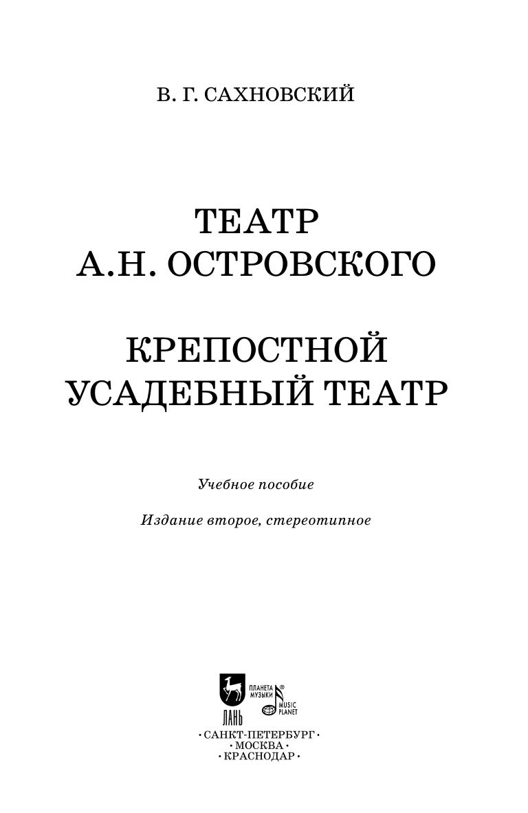 В. Г. Сахновский (1886 – 1945) – русский театральный режиссер, театровед и педагог. Был деканом режиссерского факультета ГИТИСа, а также художественным руководителем Московского драматического театра, работал в МХТ. В данное издание входят две книги В. Г. Сахновского: «Театр А.Н. Островского» и «Крепостной усадебный театр». Книга представляют собой ценность для театроведов, а также для всех, кто интересуется историей театра.