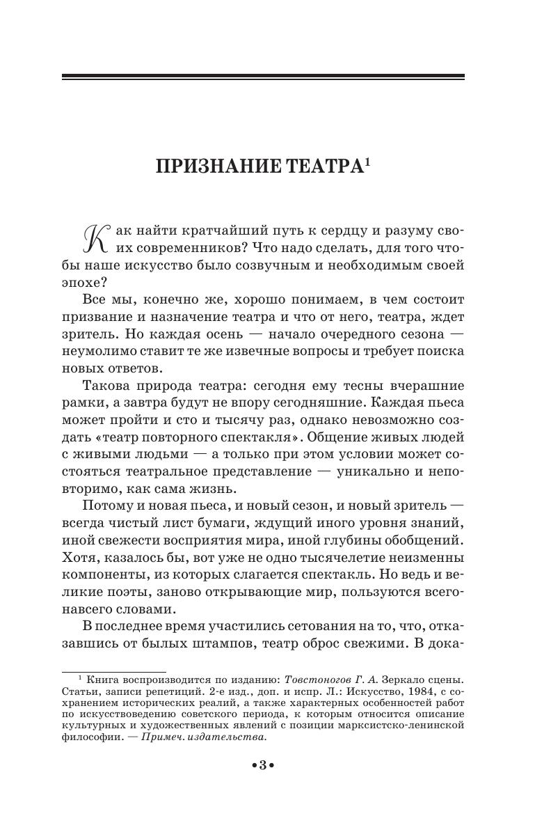 Г. А. Товстоногов (1915 — 1989) — советский театральный режиссёр и педагог, Народный артист СССР. Книга содержит статьи и выступления проблемного и общетеоретического характера, режиссерские экспликации, записи репетиций.