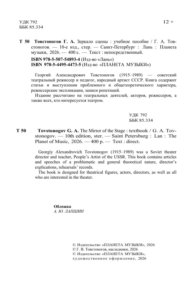 Г. А. Товстоногов (1915 — 1989) — советский театральный режиссёр и педагог, Народный артист СССР. Книга содержит статьи и выступления проблемного и общетеоретического характера, режиссерские экспликации, записи репетиций. Издание рассчитано на театральных деятелей, актеров, режиссеров, а также всех, кто интересуется театром. G. A. Tovstonogov (1915-1989) was a Soviet theater director and teacher, People's Artist of the USSR. This book contains articles and speeches of a problematic and general theoretical nature, director’s explications, rehearsals’ records. The book is designed for theatrical figures, actors, directors, as well as all who are interested in the theater.