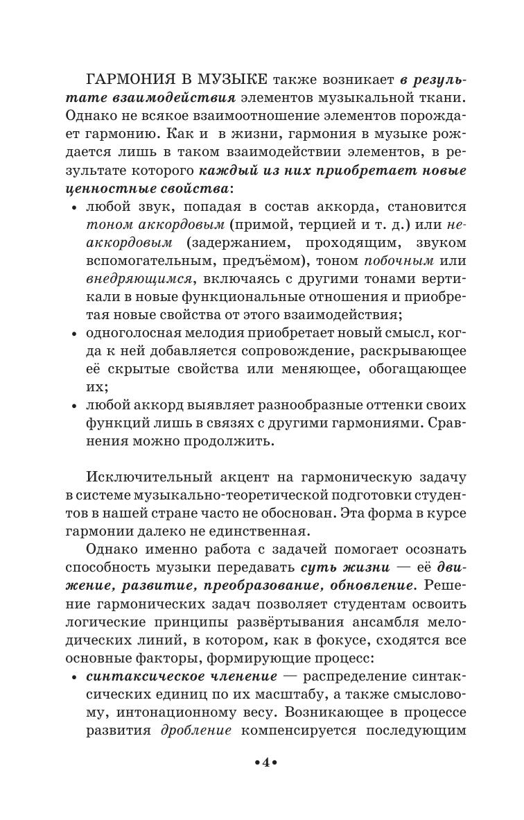 В данном пособии, написанном по просьбе преподавателей теоретических дисциплин колледжа им. Гнесиных, изложены принципы подхода к решению гармонических задач, сложившиеся за 46 лет практики курса гармонии. Главные из них: 1) гармония – ансамбль мелодий, где все голоса объединены смысловыми отношениями; 2) чётко различается отношение к гармонической вертикали в зависимости от её метрического положения: гармония на сильной доле ценится за свежесть, яркость, полноту, стилистическую цельность; гармония на слабой доле – за логику мелодической связи с гармонией сильных долей. Эти принципы соответствуют логике композиторской практики в классической тональной системе. Пособие адресовано преподавателям и студентам средних музыкальных учебных заведений.