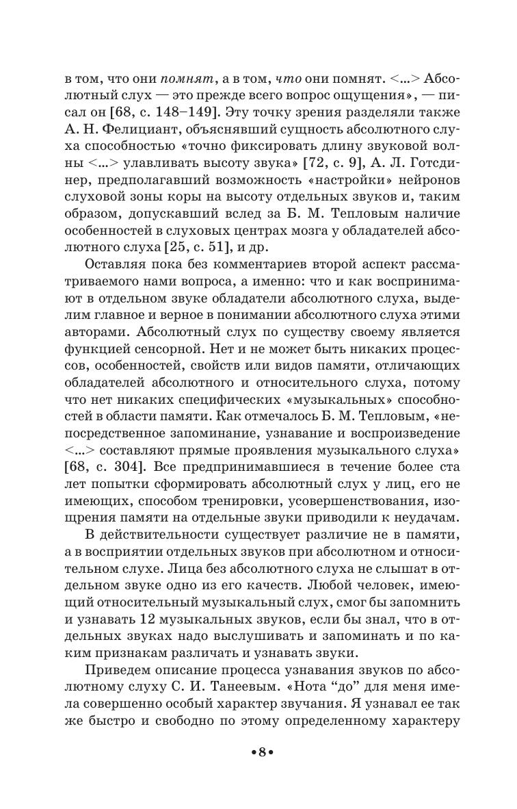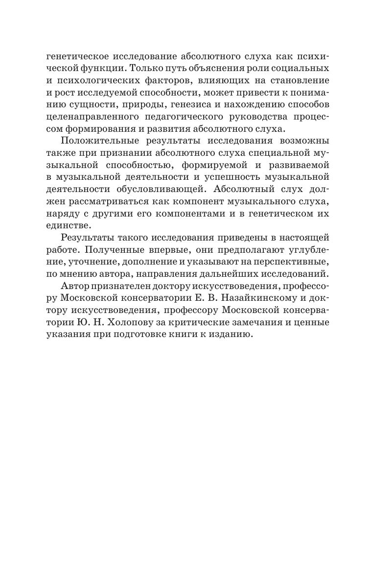 В данной книге дано научное объяснение феномена абсолютного слуха. Анализ результатов ранее проводившихся исследований и собственная теоретическая и экспериментальная работа автора привели к разработке эффективного способа формирования и развития этой ценной, считавшейся врожденной музыкальной способности. Книга адресована музыковедам, преподавателям и студентам музыкальных учебных заведений, психологам, музыкантам, а также всем интересующимся вопросами психологии музыкальных способностей.